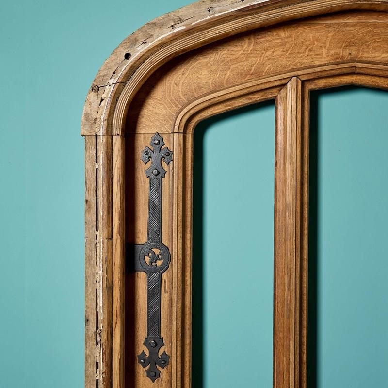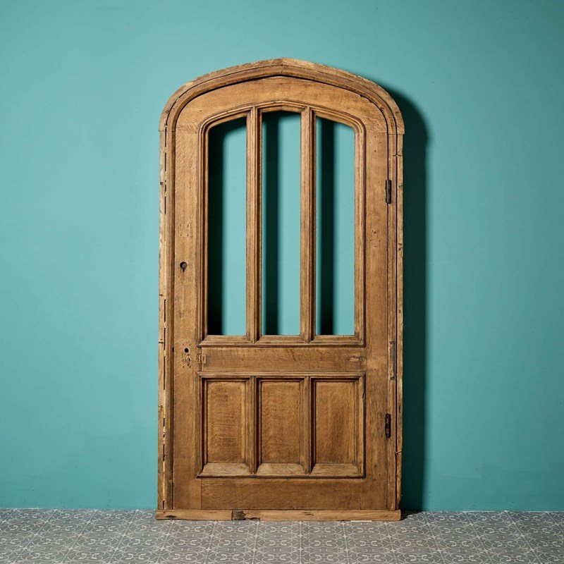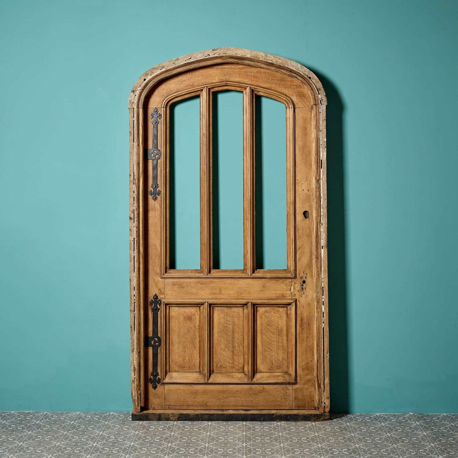 English Gothic Revival Oak Arched Exterior Door For Glazing