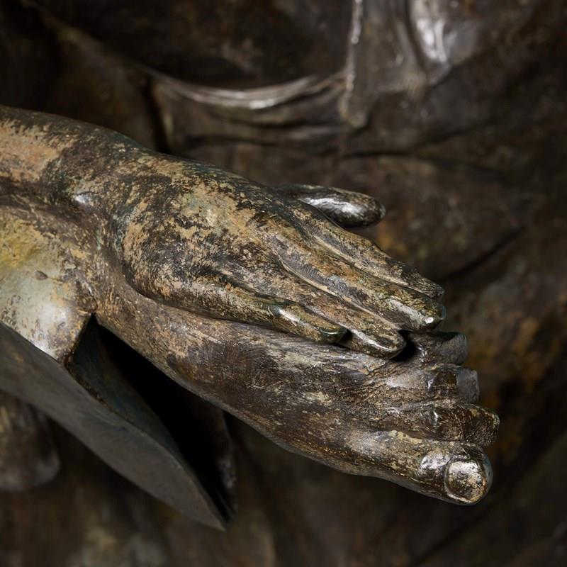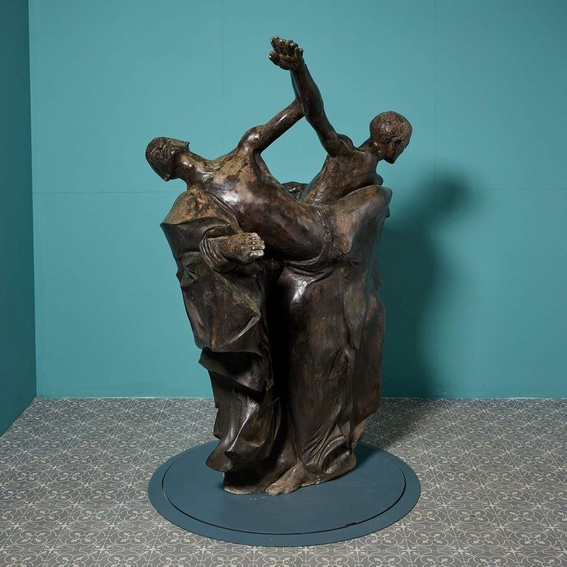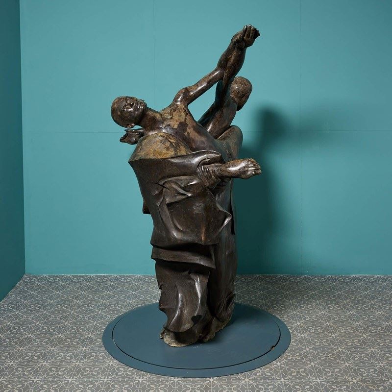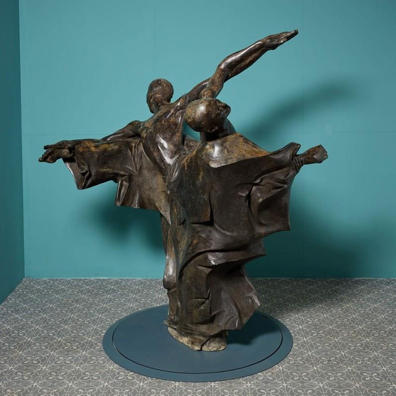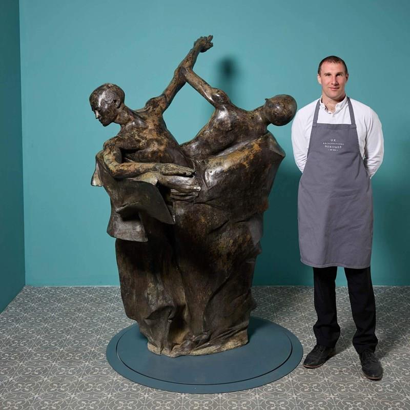 A lifesize bronze statue titled ‘The Three Kings’ by the acclaimed British sculptor, John W. Mills. This impressive, large scale bronze would make a striking statement piece in any setting, suitable for decorative interior use or outdoors as a unique modern centrepiece of a courtyard or pond surround.