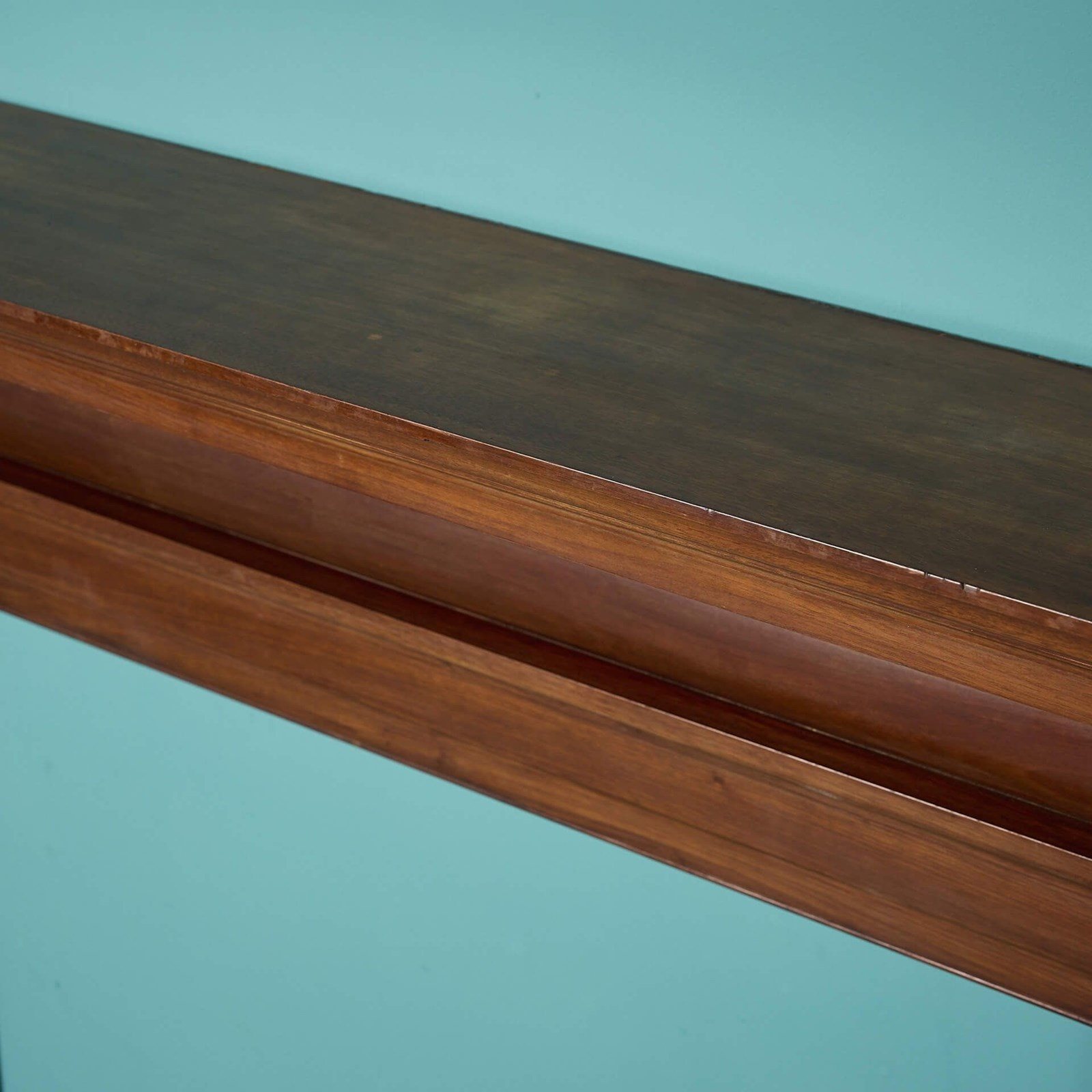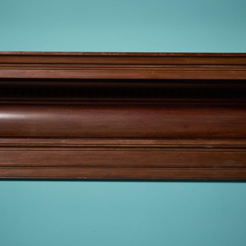 Dating to circa 1870, this handsome surround displays an array of charming features; its large mantel and bracketed jambs are complimented by the old French polish finish and dentils to the frieze add a flourish of grandeur.