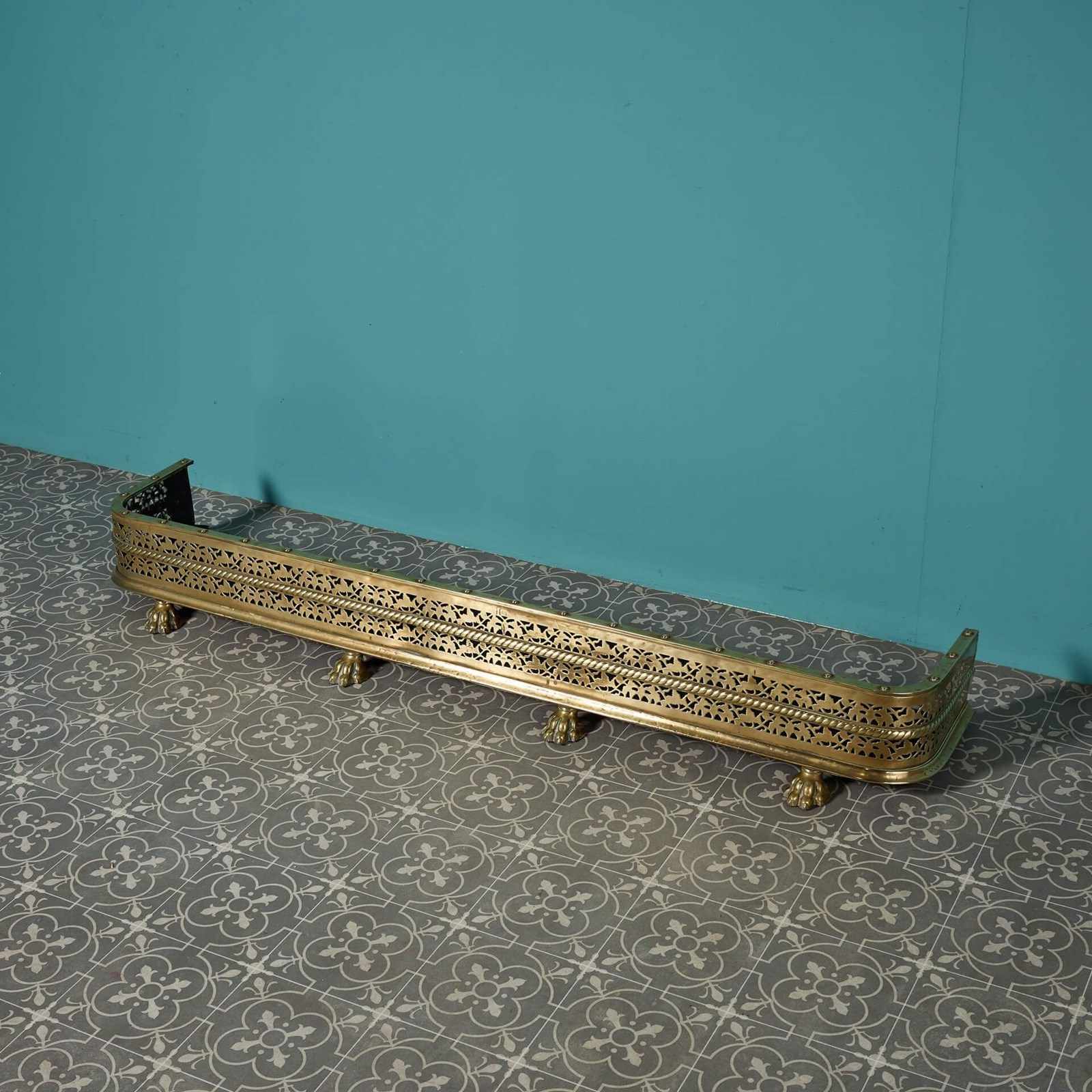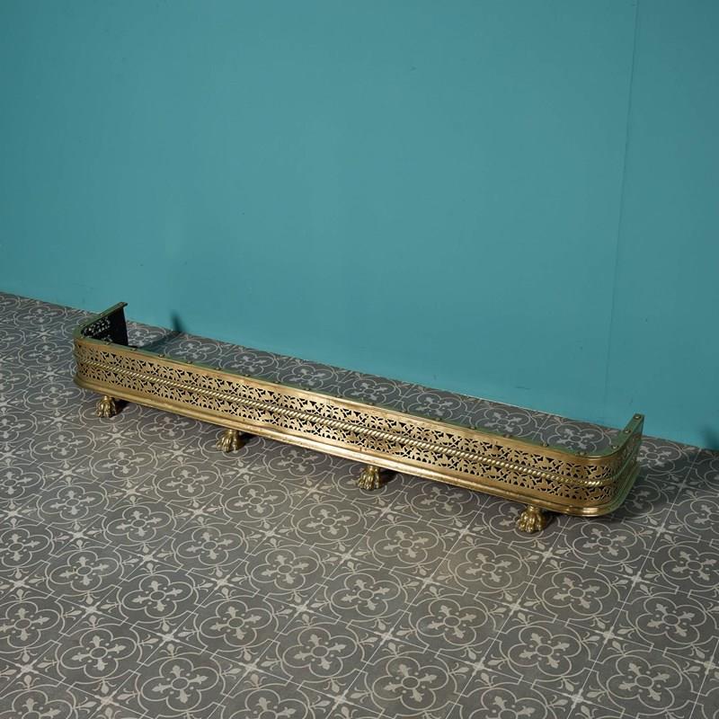 Large Victorian Brass Fire Fender With Lion Claw Feet