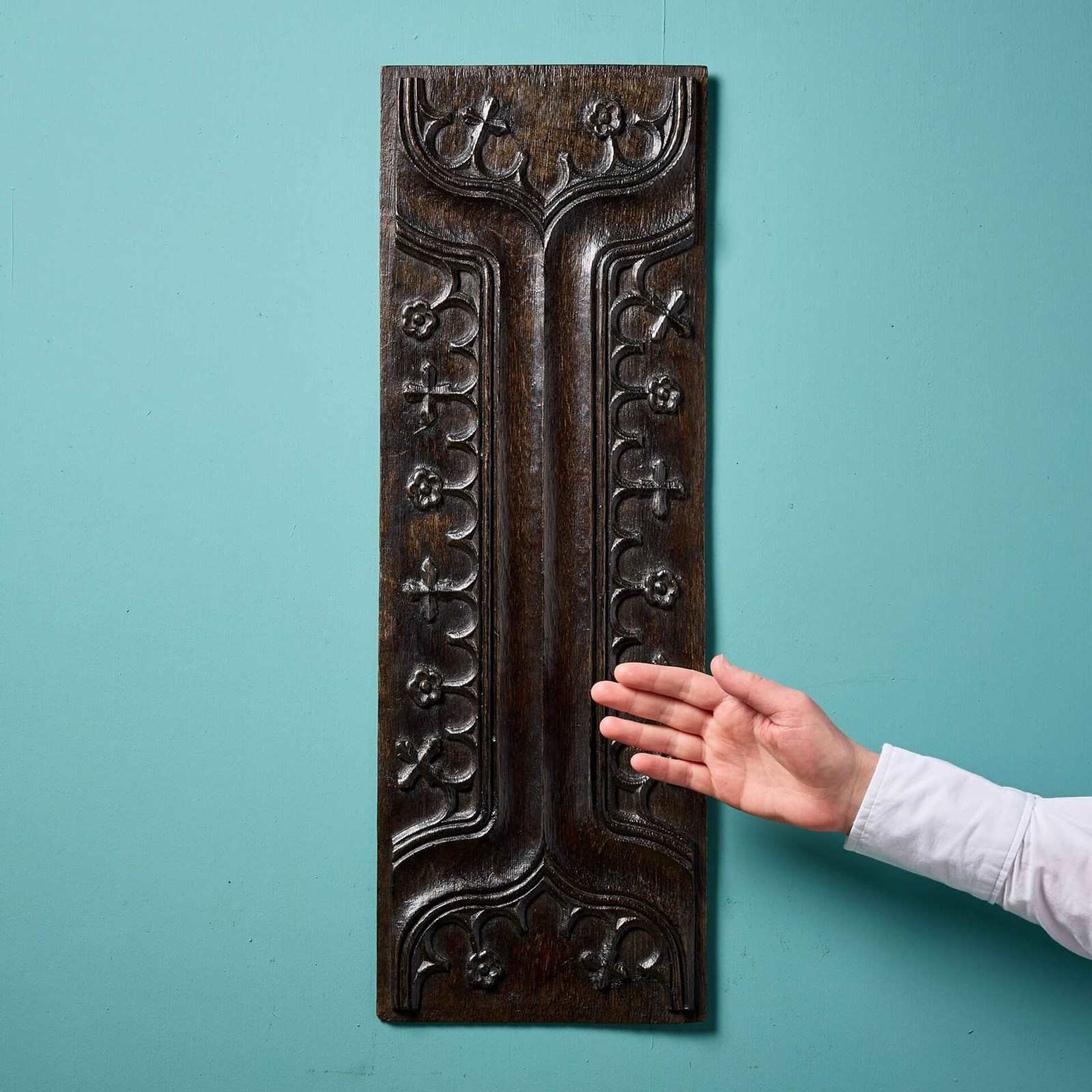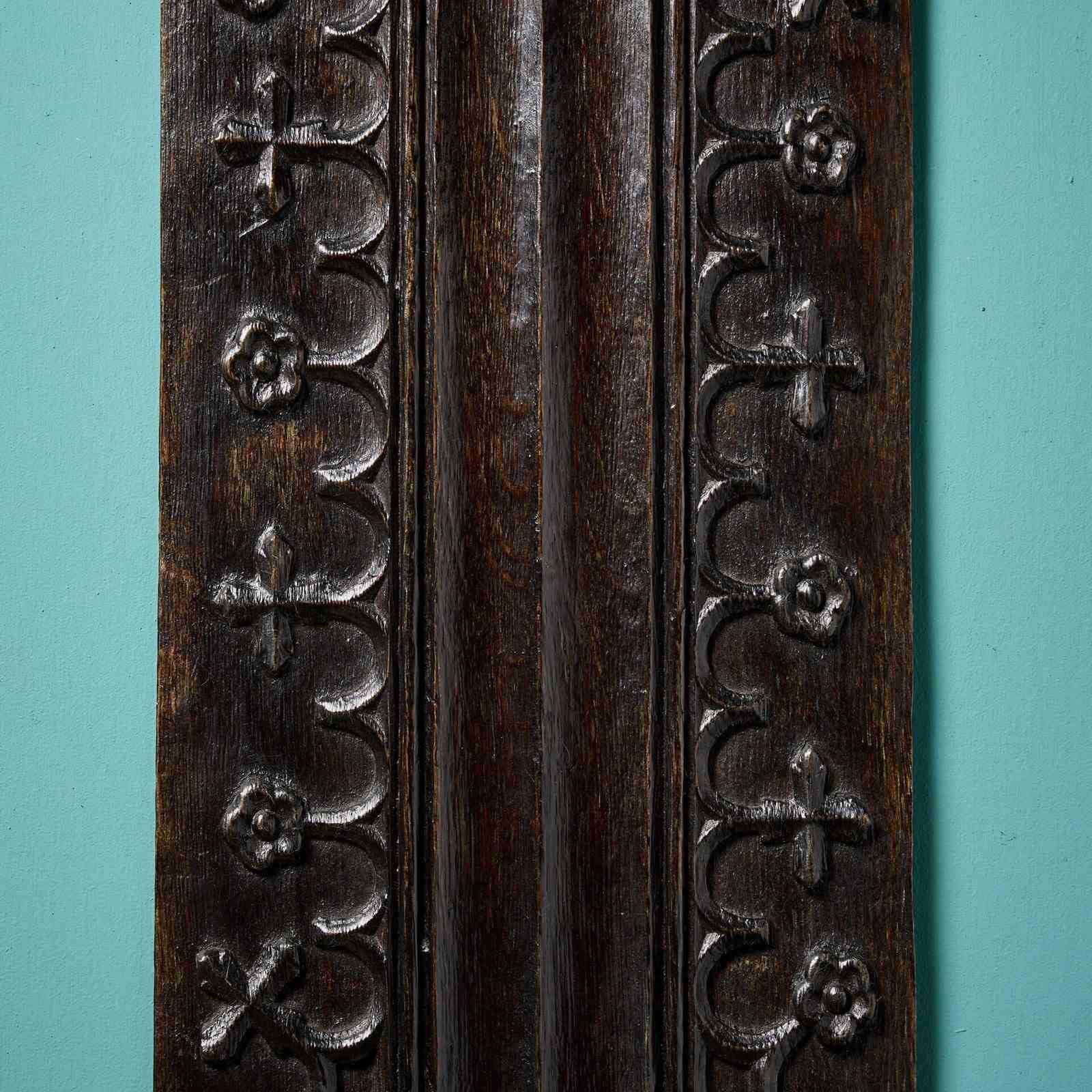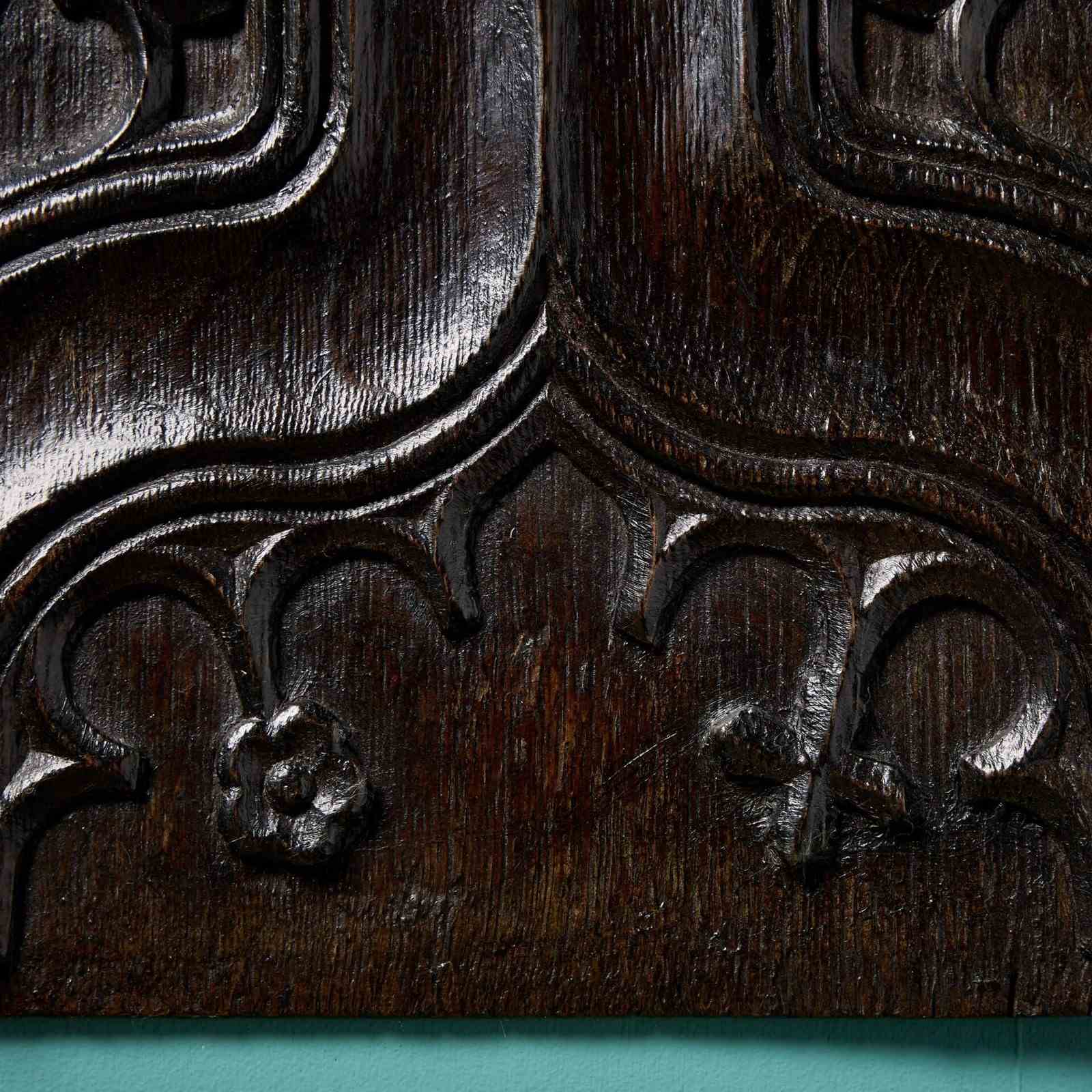 Long 16Th Century Carved Oak Panel In Parchemin Design