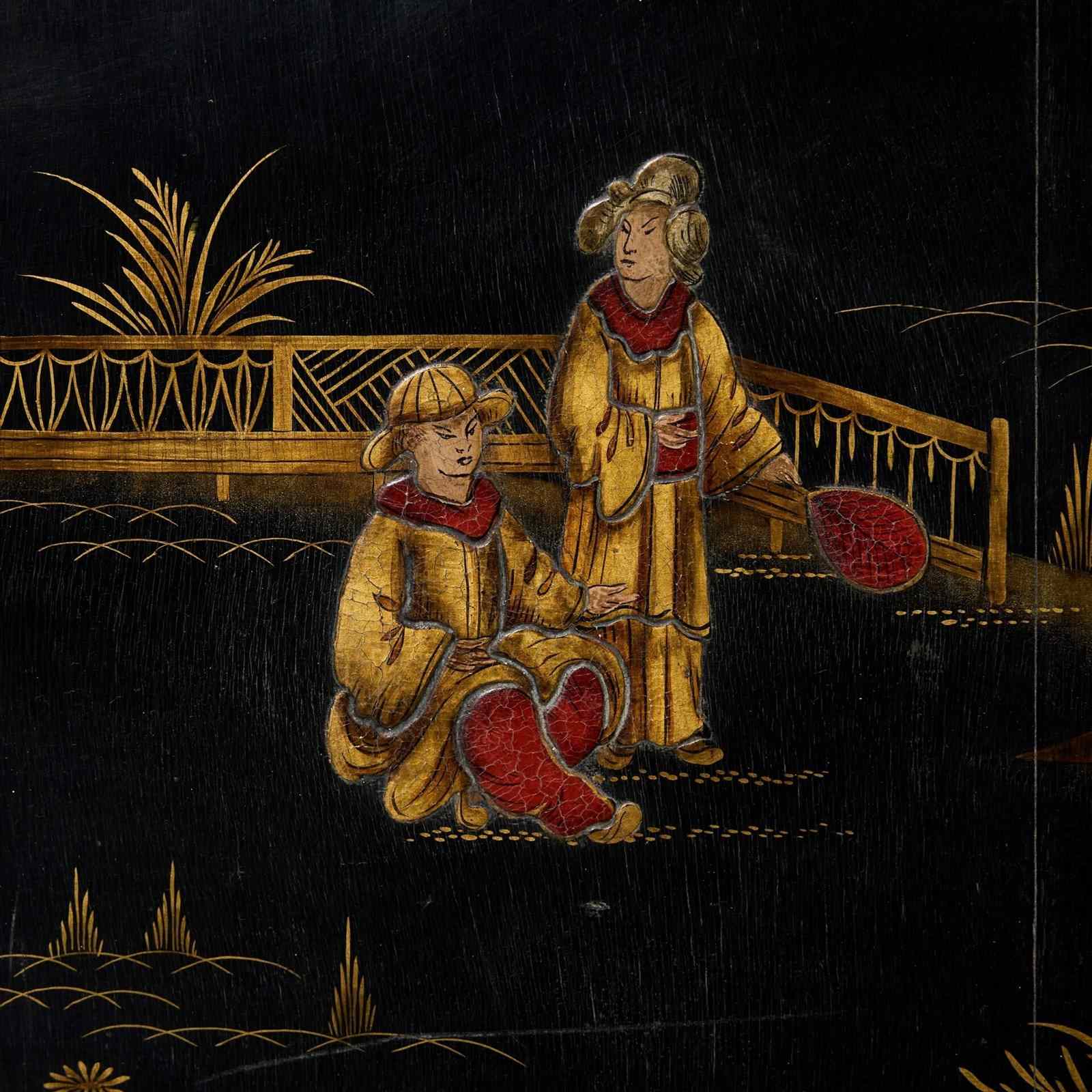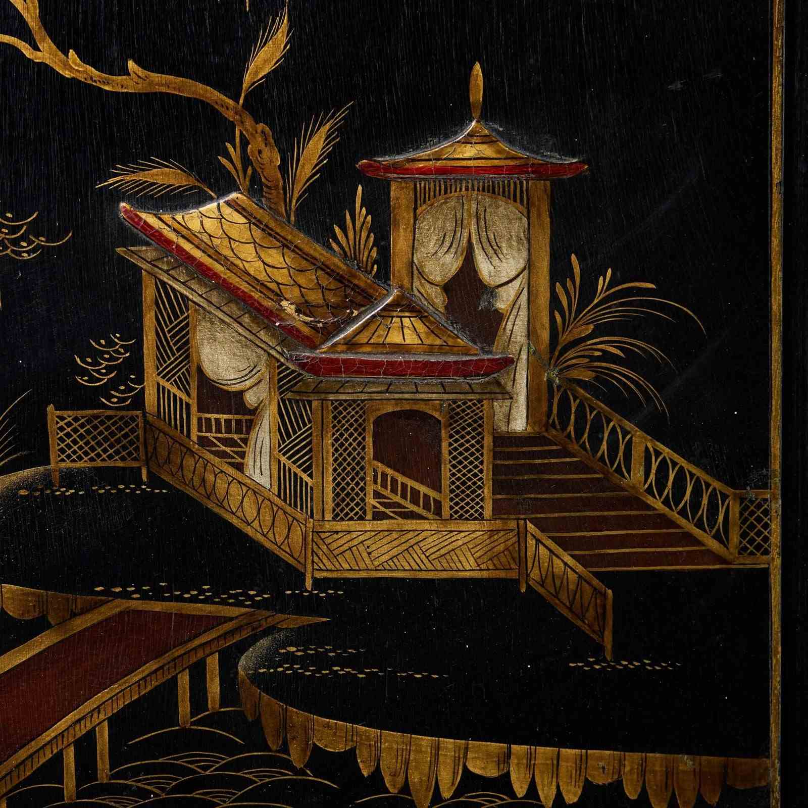 Chinoiserie, from the French ‘Chinois’ meaning Chinese, was a style inspired by art and design from China, Japan and other Asian countries during the 18th century. It relied largely on craftsmanship and style rather than accurate portrayals of oriental motifs, the style most popular in Britain between 1750 and 1765.