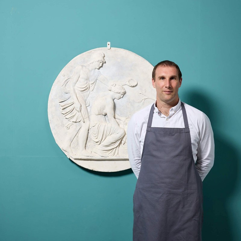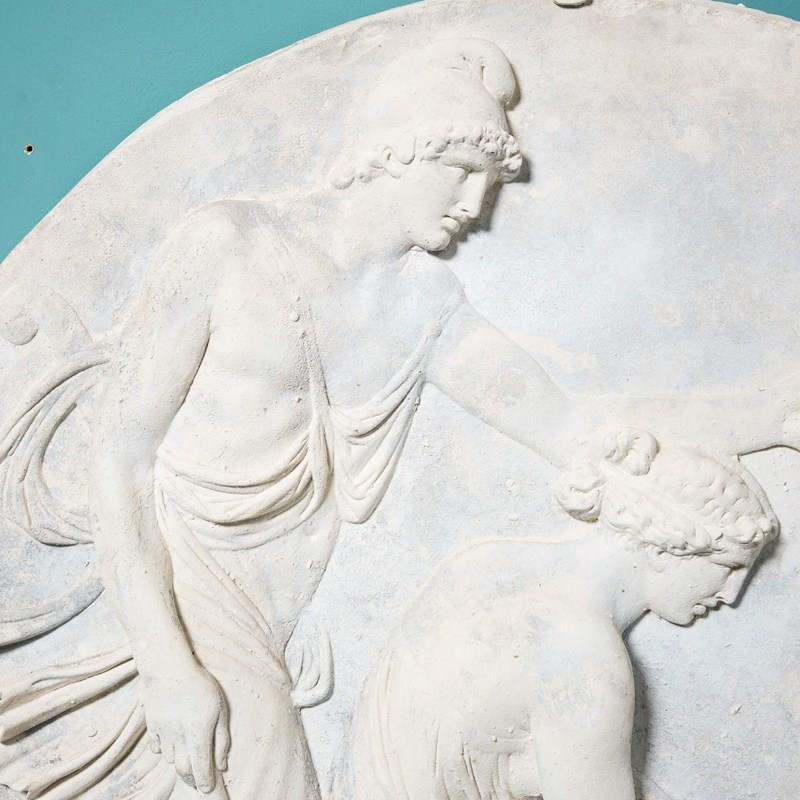 A large 20th century neoclassical style plaster wall roundel after renowned Italian sculptor, Antonio Canova (1757 – 1822).