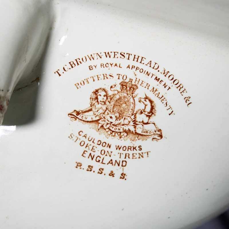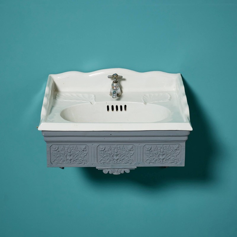An original antique Victorian wall sink by T. C. Brown-Westhead, Moore & Co. circa 1895. This sink is stamped with maker’s mark and incorporates the Royal Coat of Arms.