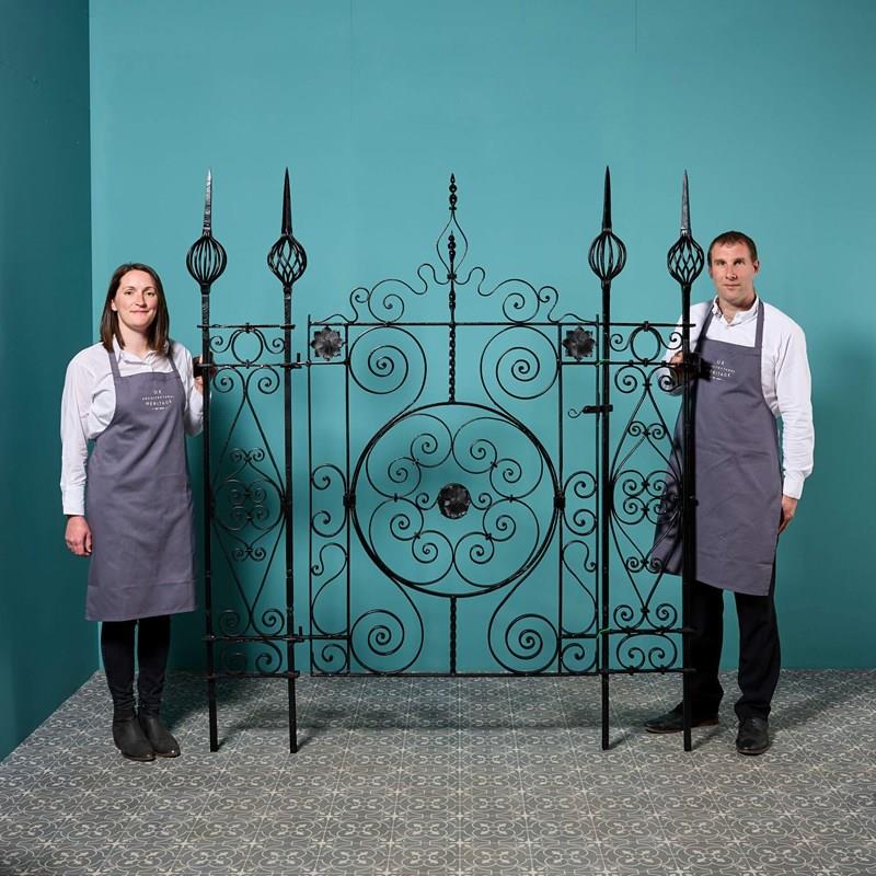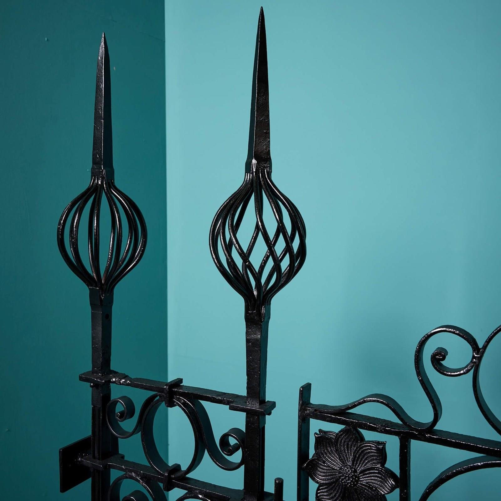 Each post is topped with spherical and twisted sphere finials, finishing the gate with a flourish of grandeur and prestige that's perfect for an entranceway or walled garden.