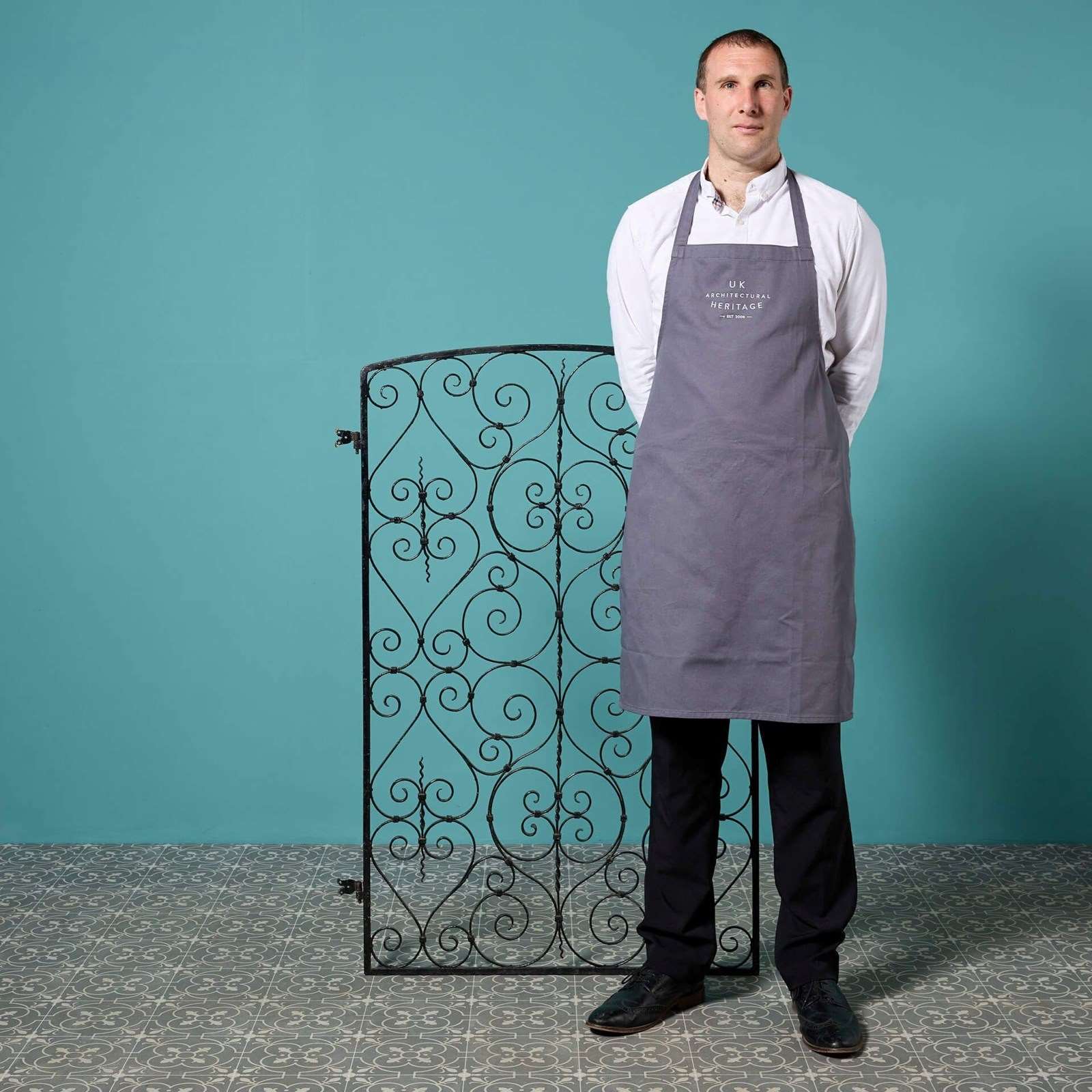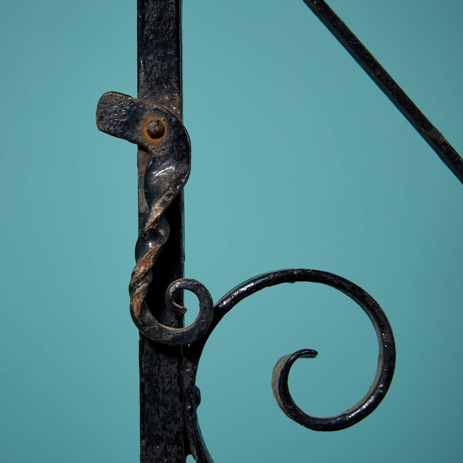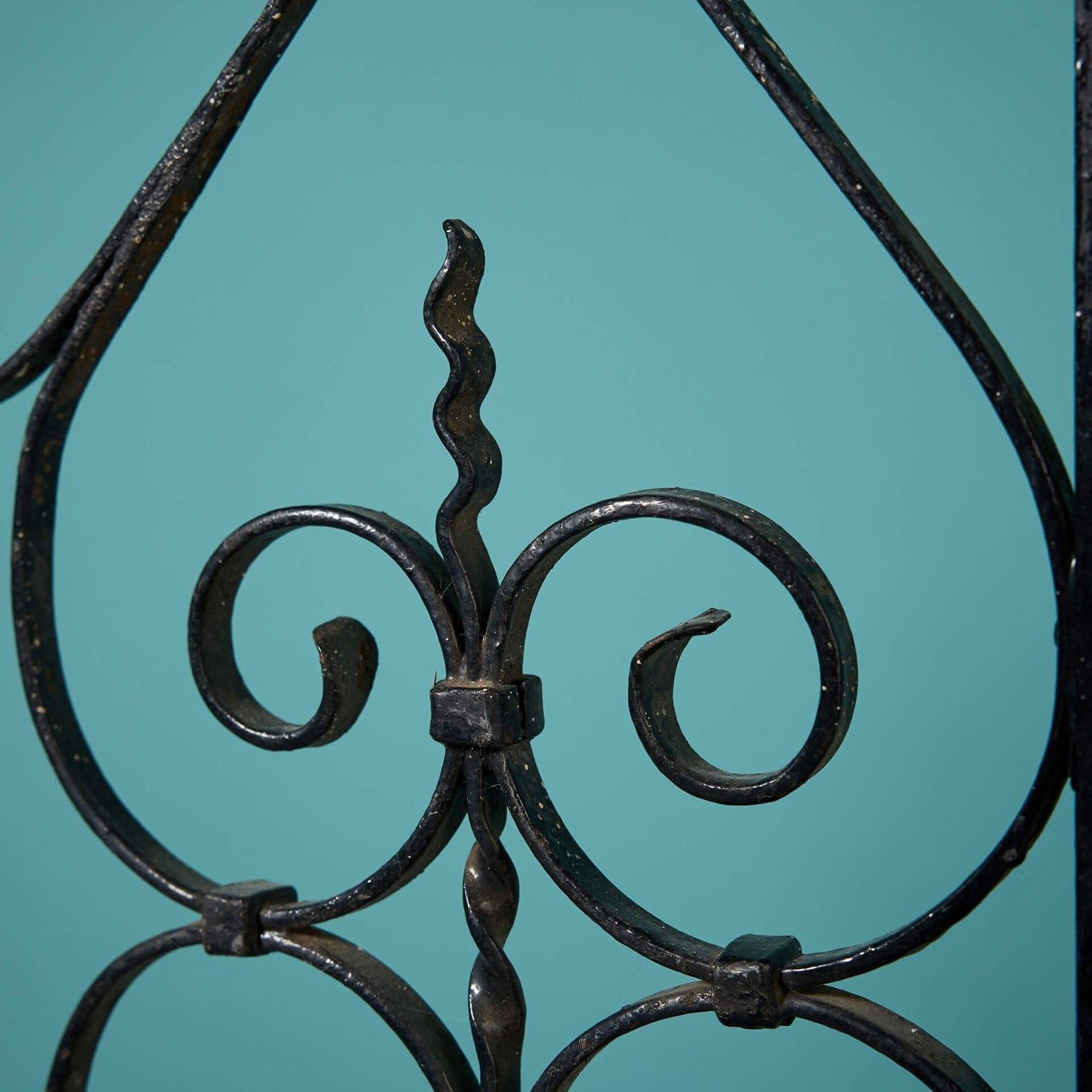 A well-constructed and finely made Victorian wrought iron garden gate, intricately handcrafted with ornate repeating scrollwork. Dating from the early 20th century, this simple side gate is a timeless addition to gardens of any age with its gentle arch and original fixtures.