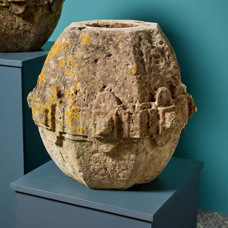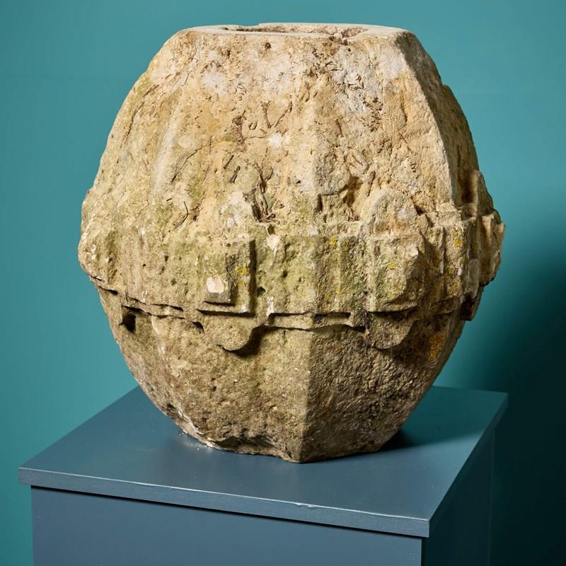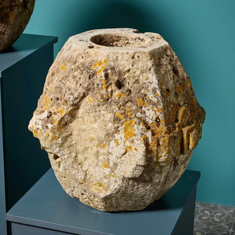 An interesting pair of 17th century limestone pier caps, sourced from Canterbury.