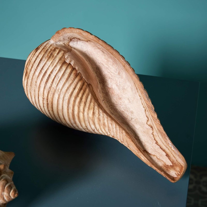 Pair Of 20Th Century Carved Hardwood Seashells