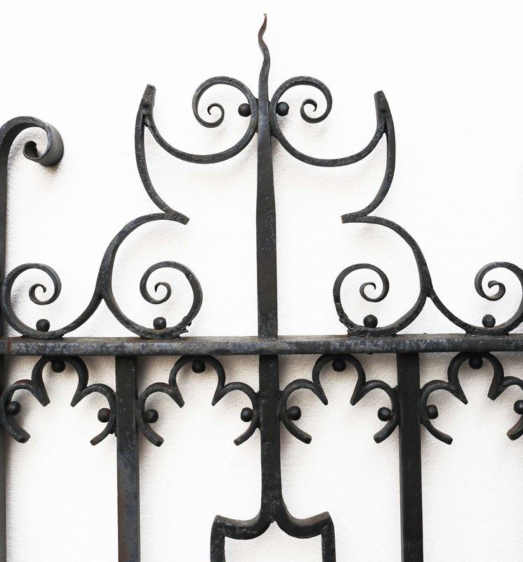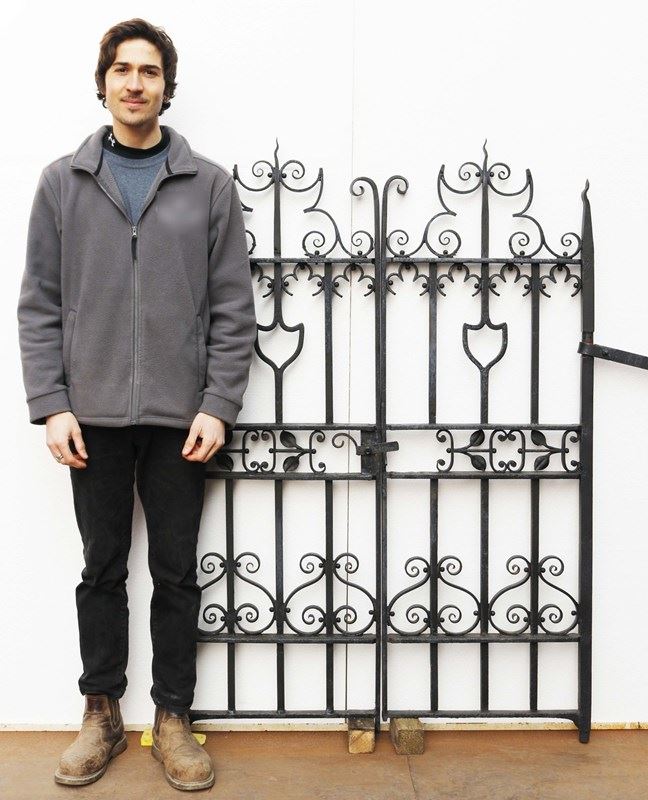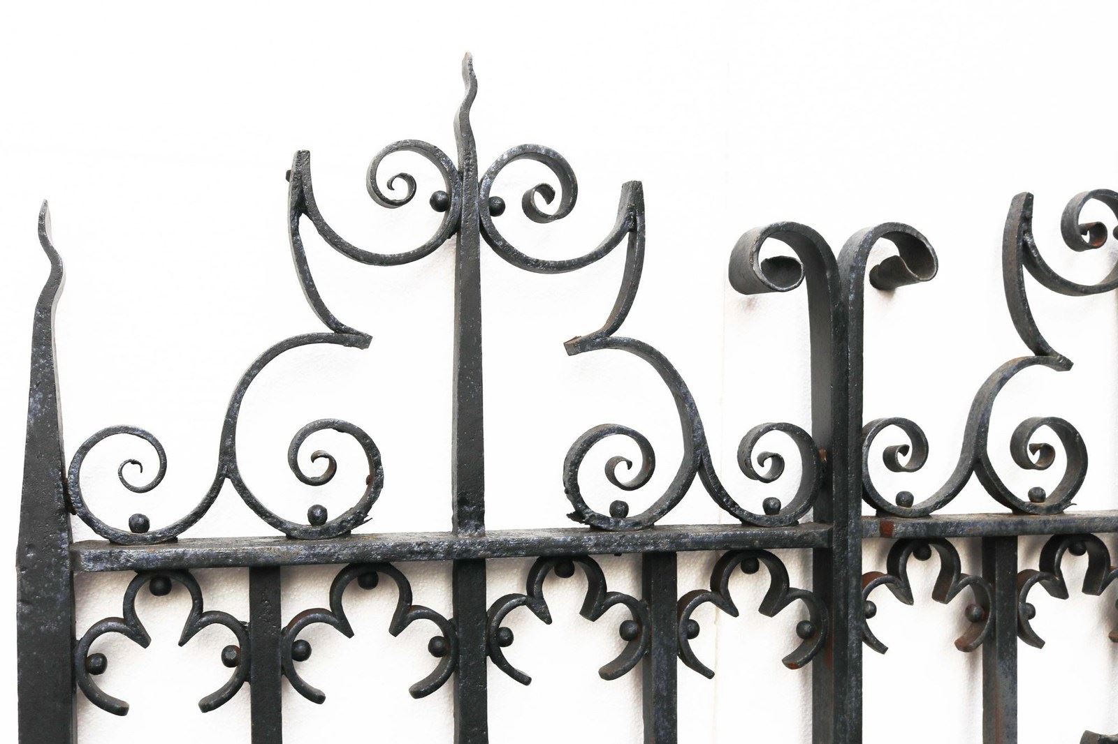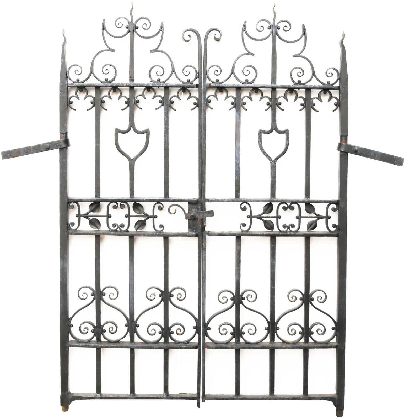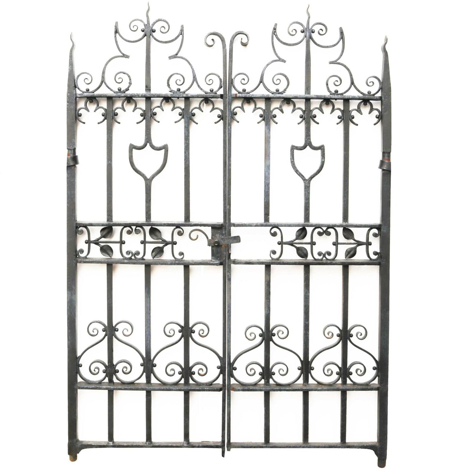 Pair of Heavy Wrought Iron Garden Gates. An intricately designed set of Victorian gates featuring scrollwork as well as a foliage themed centre. The gates have been shot blasted and primed giving them a bold appearance.
