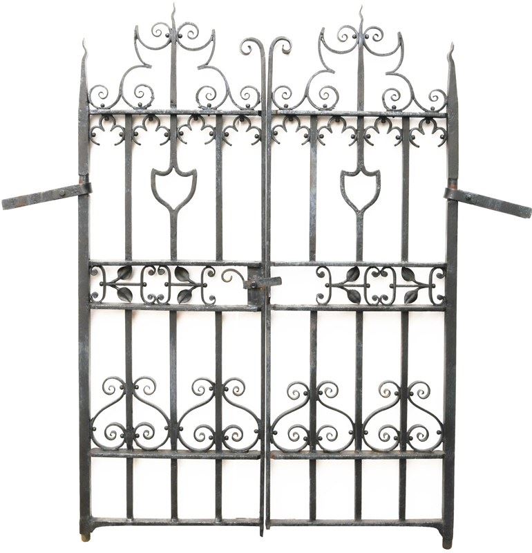 Good structural condition. The gates have been shot blasted and primed. They have parts of their original hinges and a replacement latch.