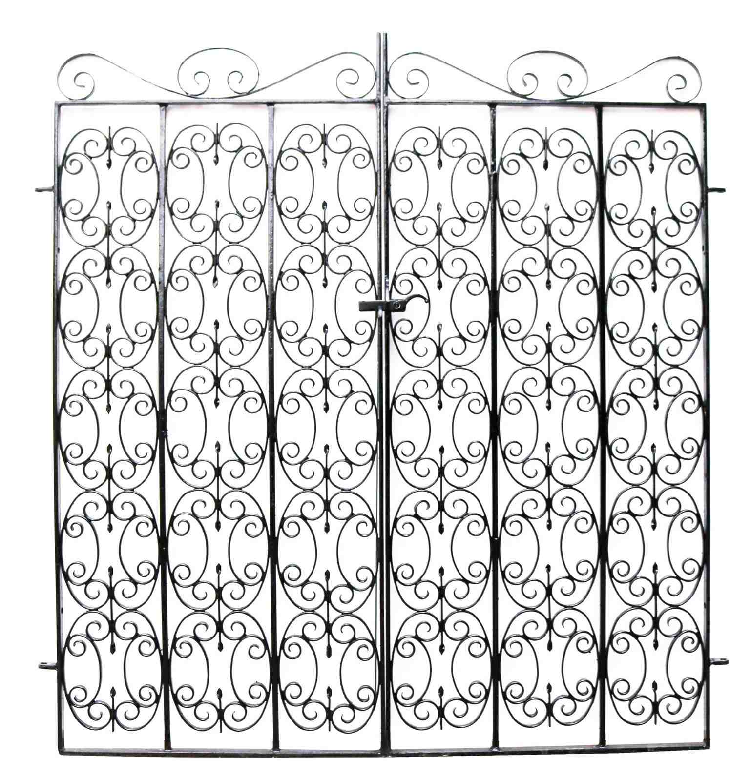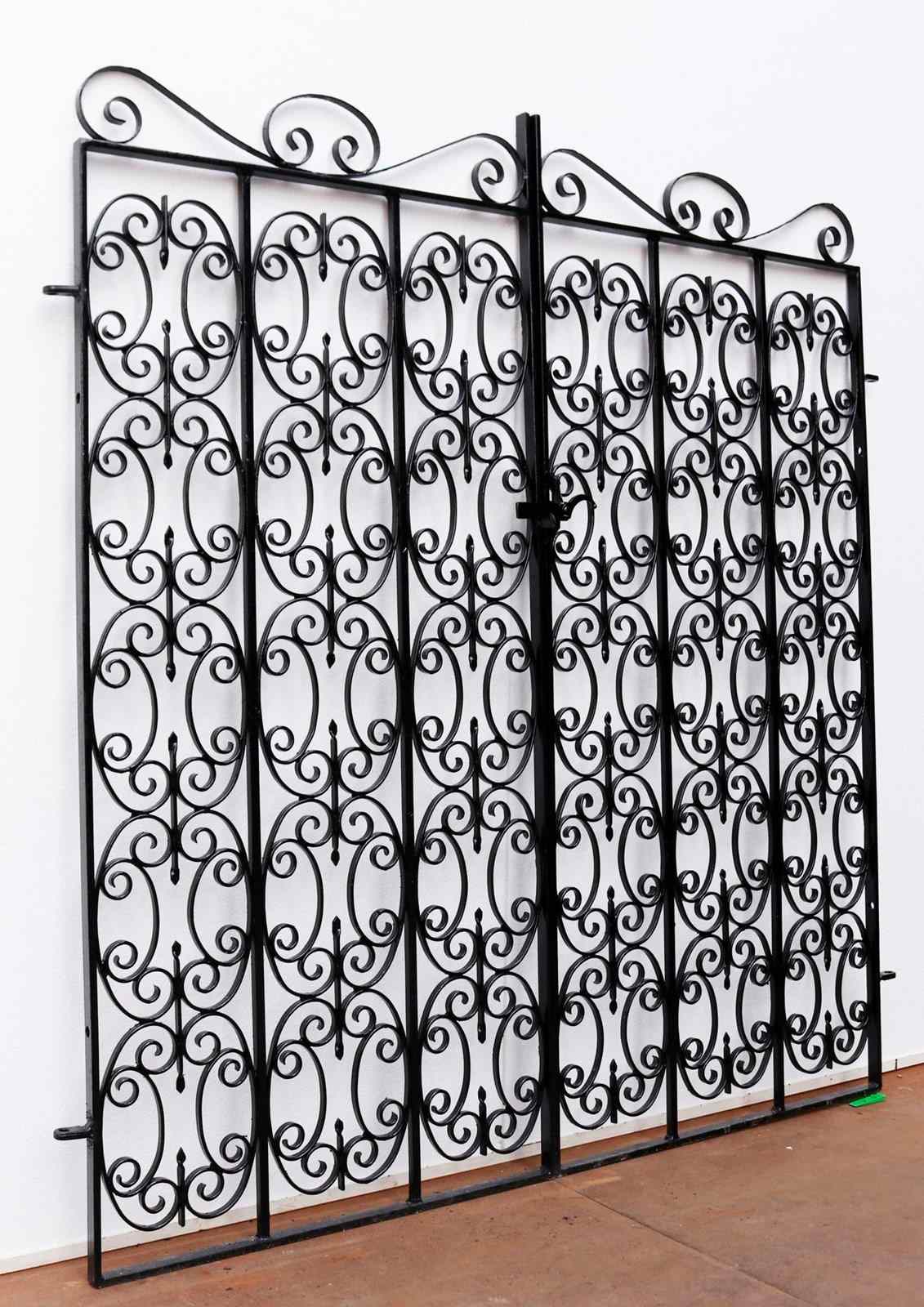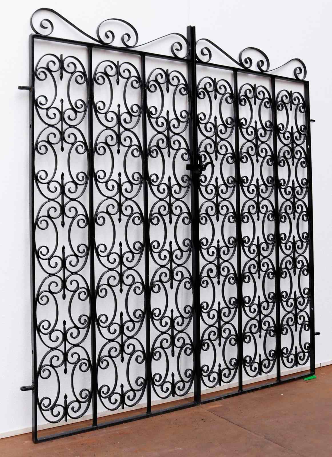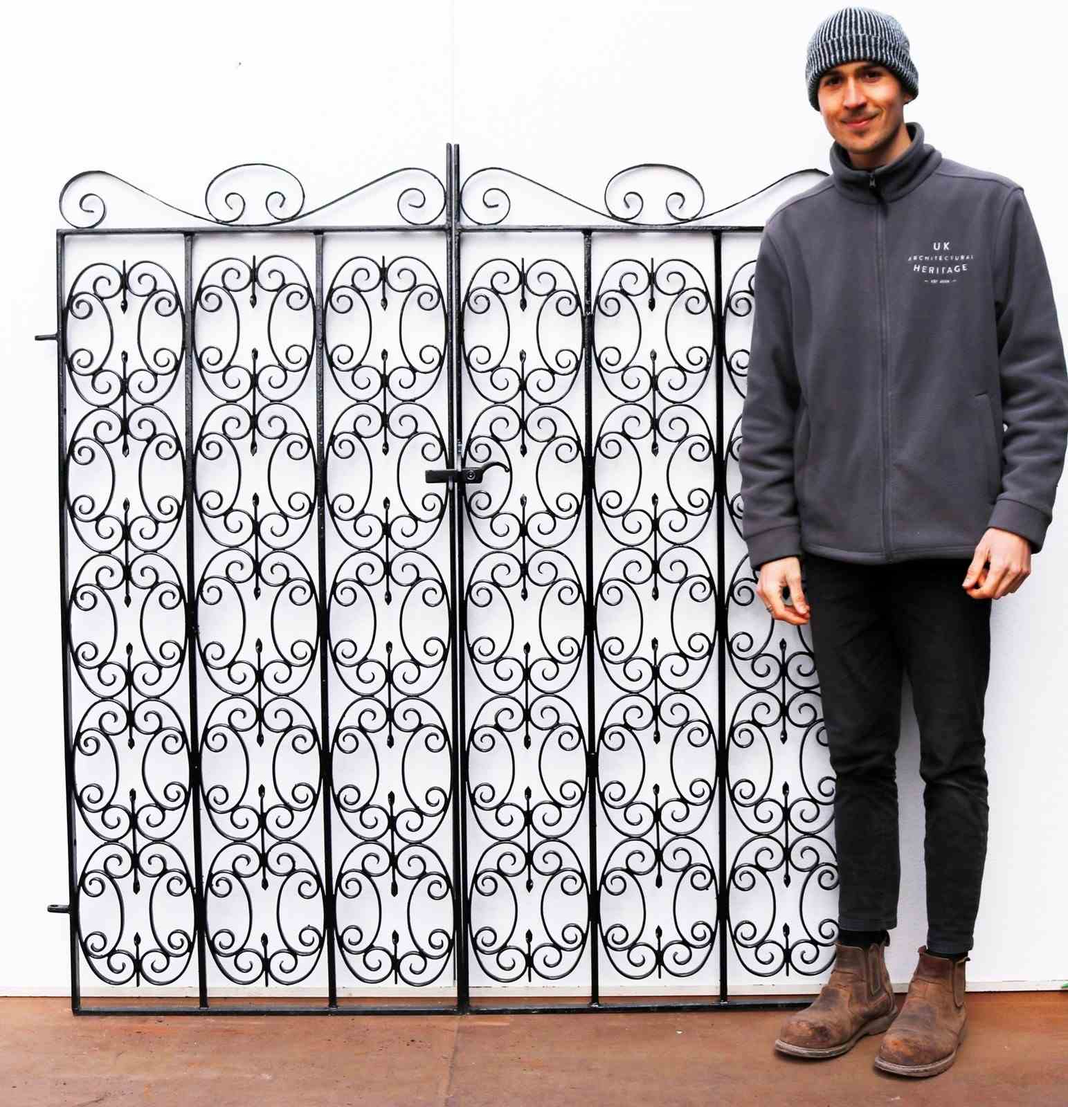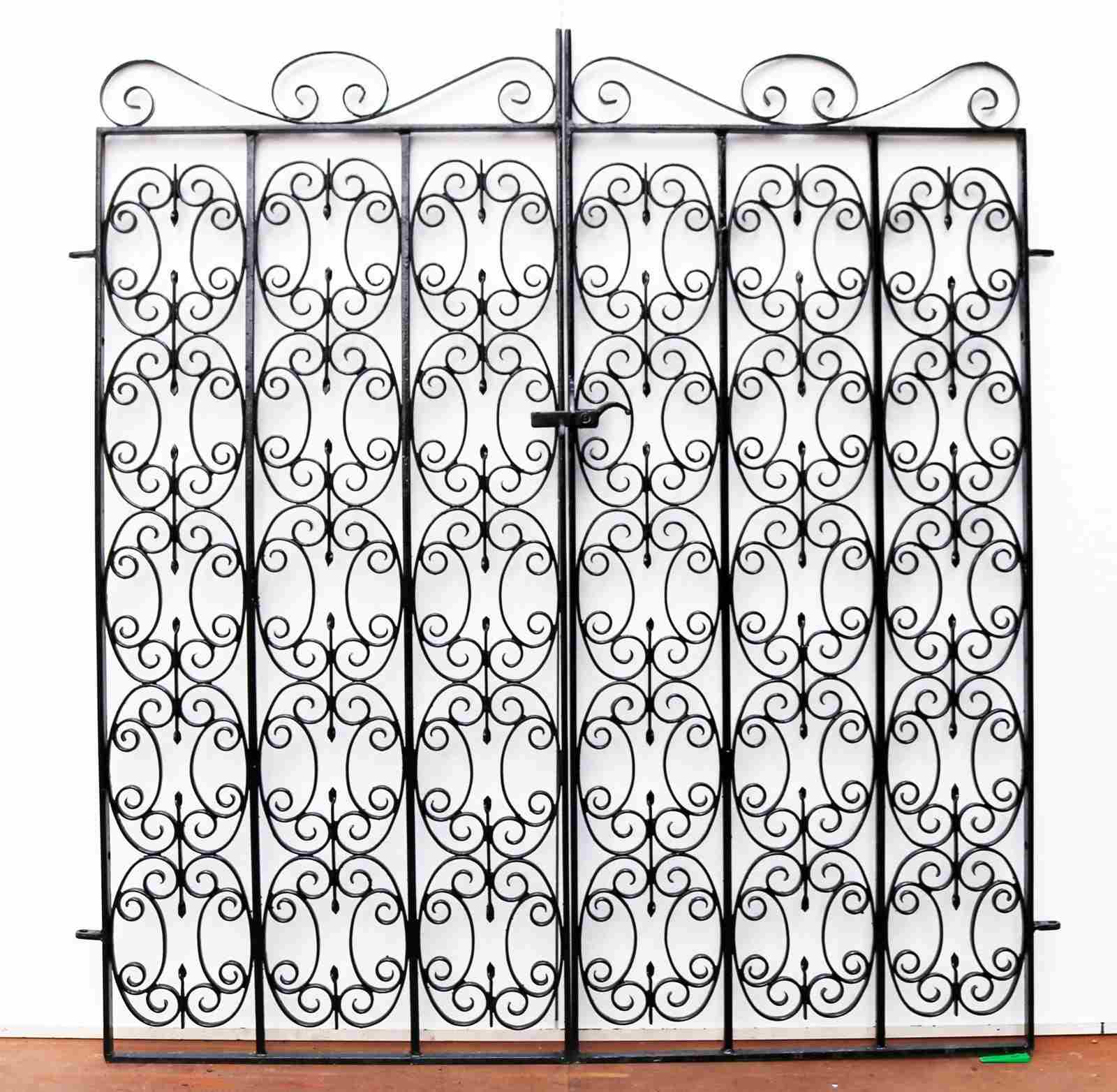 Pair of Reclaimed Wrought Iron Garden Gates. A set of wrought iron garden gates with a repeated scrollwork design.