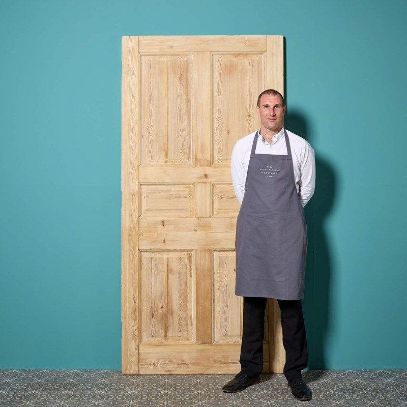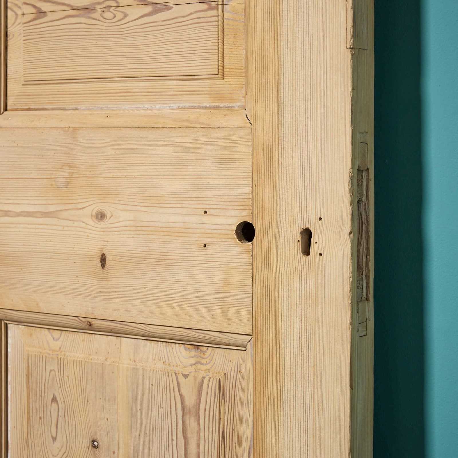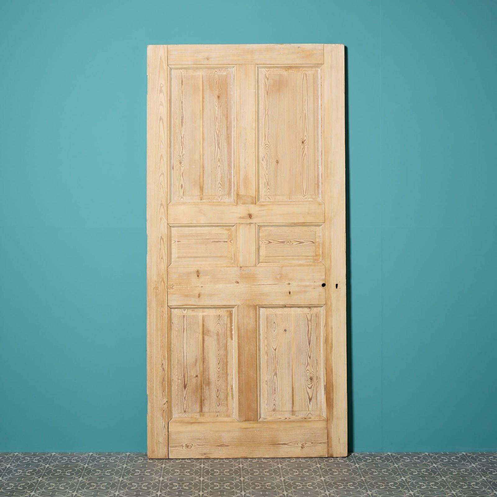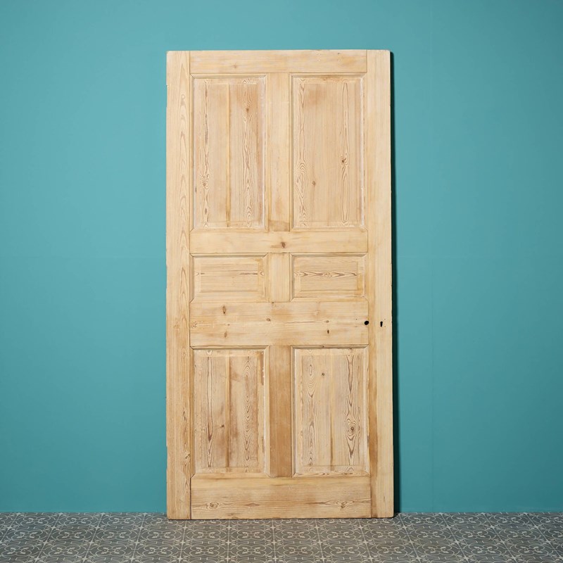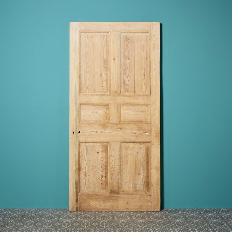 A smart mid-19th century reclaimed pine internal door in the Georgian style with six panels, raised and fielded to both sides. Stripped and sanded, this antique pine door can be finished in paint, stain or wax to suit your interior vision.