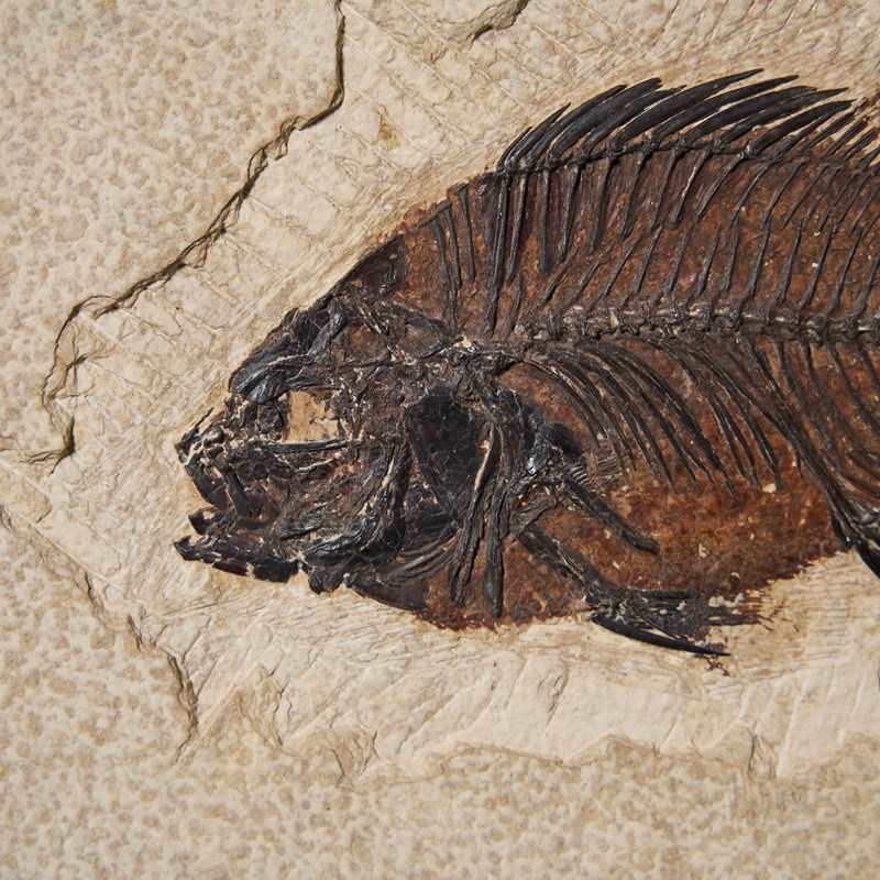 The fossilised fish is displayed to the centre making for a striking and intriguing wall decoration in any property looking to appreciate prehistoric history.