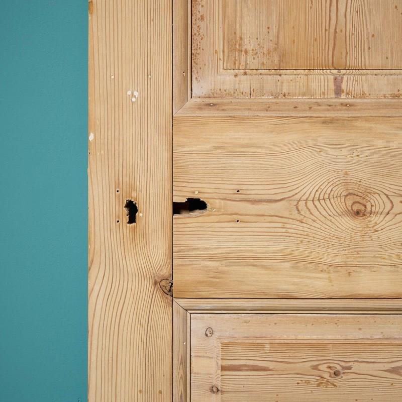 Good structural condition. Stripped finish. Old hardware cut outs.