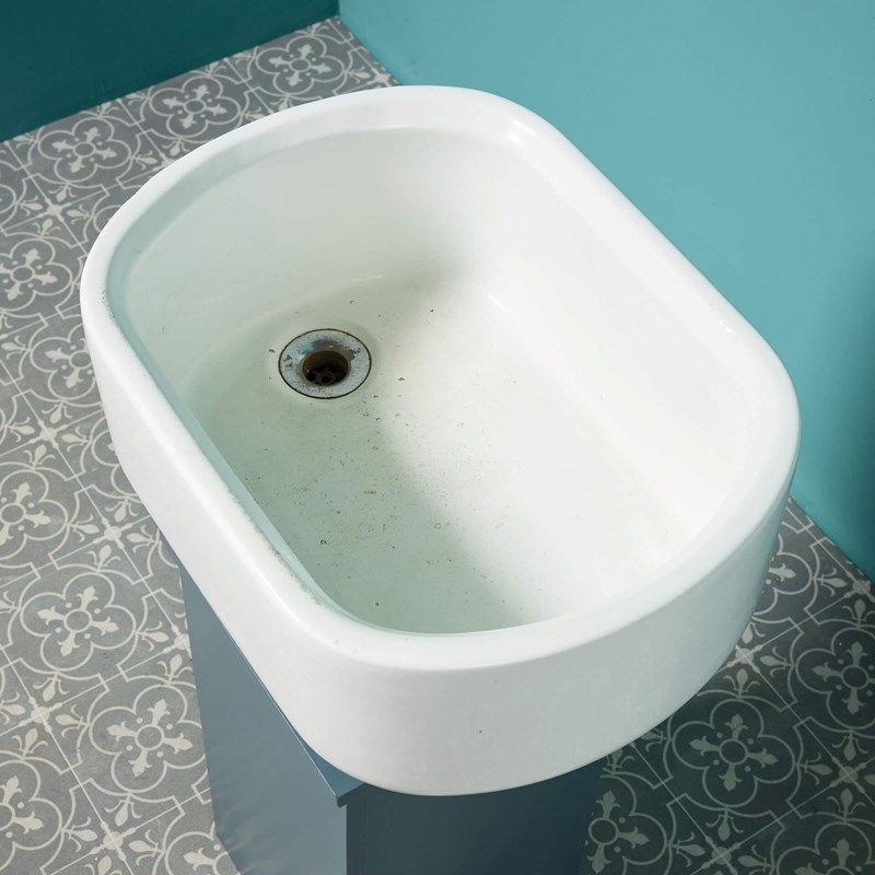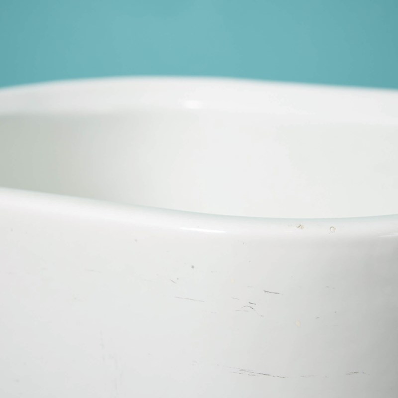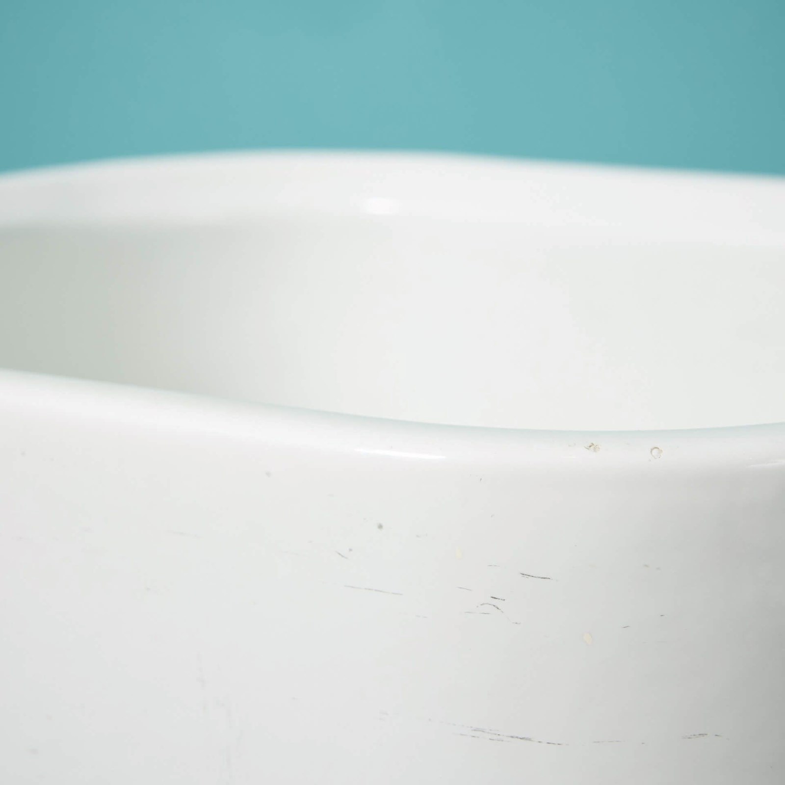 An unusually-shaped English oval belfast sink, reclaimed from a UK factory. Fitted with it's original waste, this reclaimed belfast sink is the perfect addition to a modern farmhouse kitchen or contemporary utility room. Other similar basins available, sold separately.