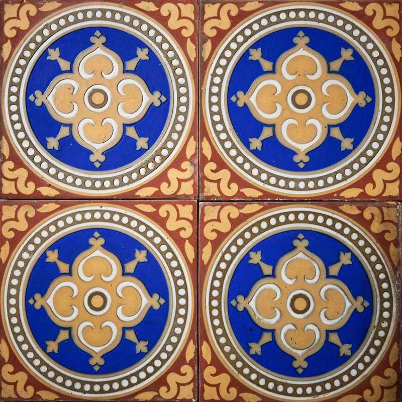 Supplied loose, these 6-inch tiles are antique and as such have a characterful, timeworn look with scuffs and crazing here and there that only enhances the beauty of these striking patterned tiles.