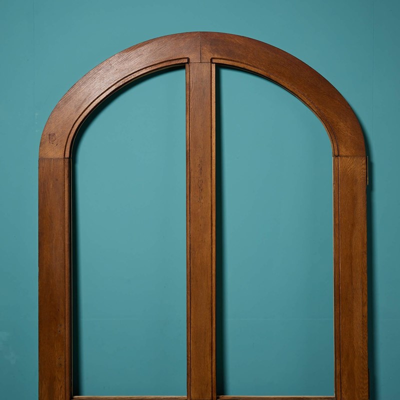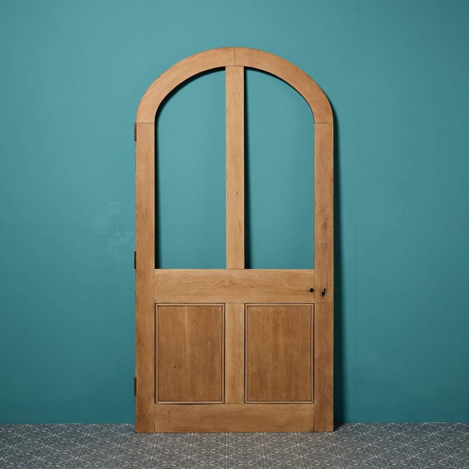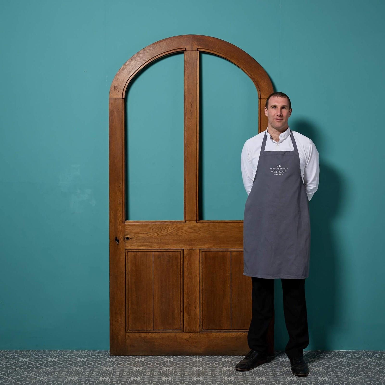A tall antique arched external oak door for glazing dating to circa 1900, sourced from a grade II listed building in Bristol’s old city.