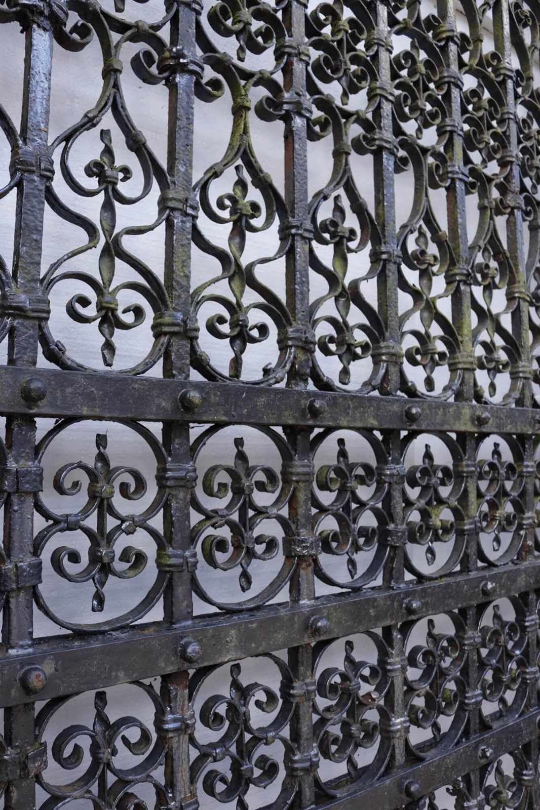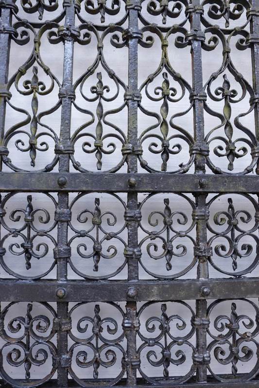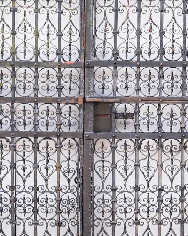 Beautifully crafted, these antique wrought iron driveway gates date from circa 1840 and feature lots of intricate repeating scrollwork throughout.