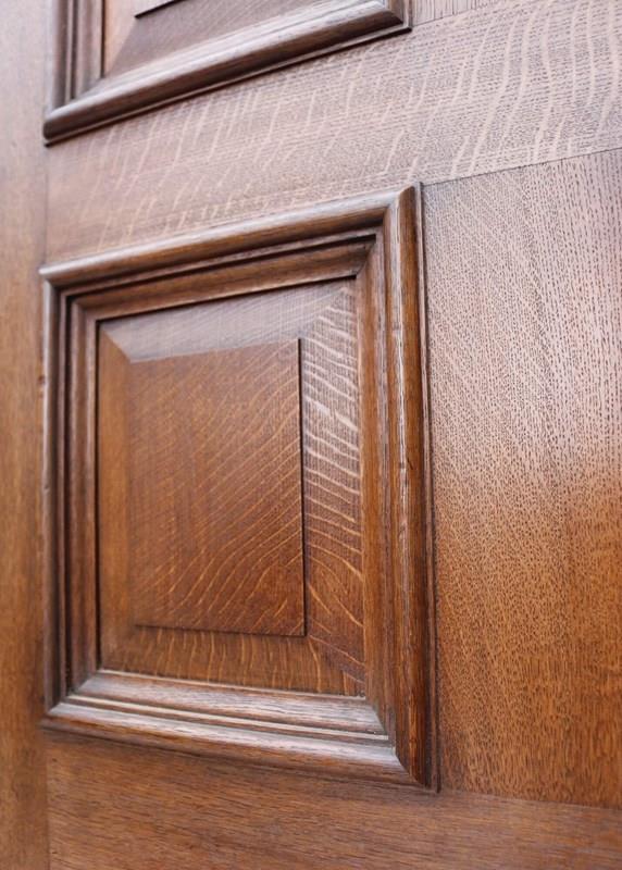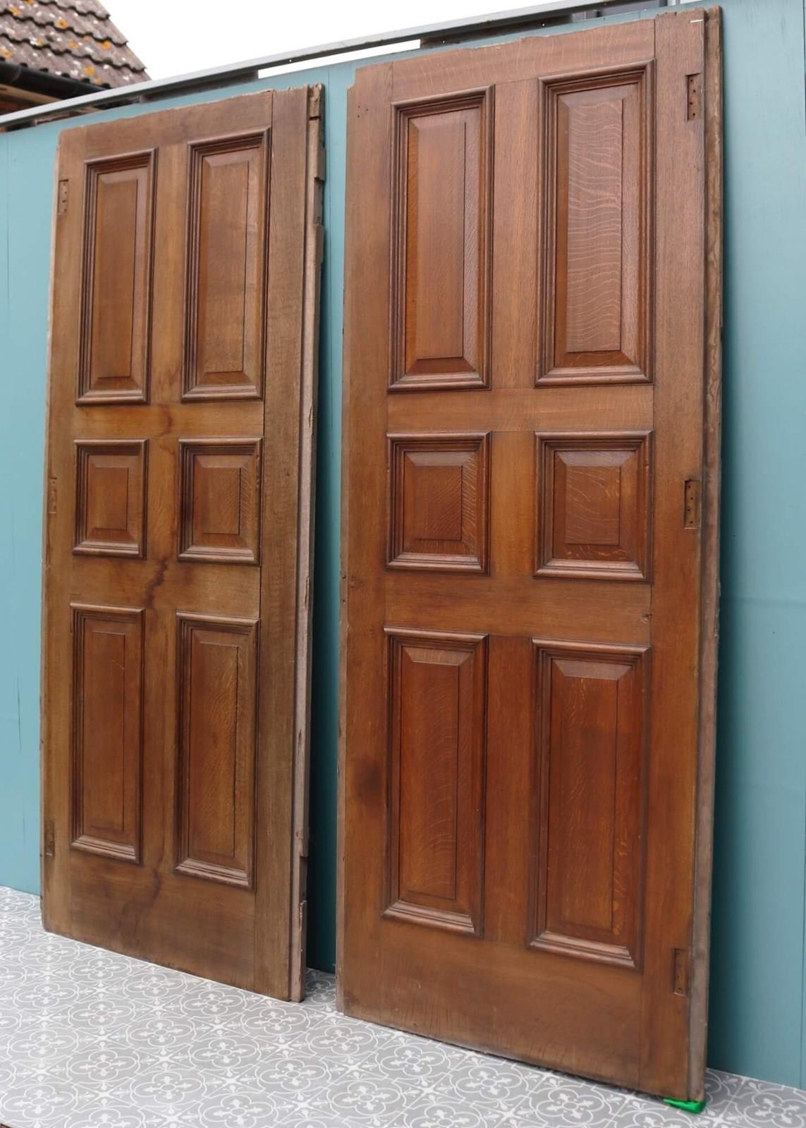 Made in oak, this pair of reclaimed wall panels have a beautiful warm wood colouring that sits elegantly in period properties with traditional styling. Dating from the early 19th century, they feature crisp raised and fielded moulding evocative of the Georgian era across a range of handsome wood cuts with attractive natural graining. Once used as door jambs, the quality and height of these tall oak panels make them ideal for repurposing as decorative architectural features on a wall. They would benefit from being trimmed down for purpose, making a striking pair of reclaimed oak wall panels either side of a doorway or as feature panelling in an entrance hall or study.