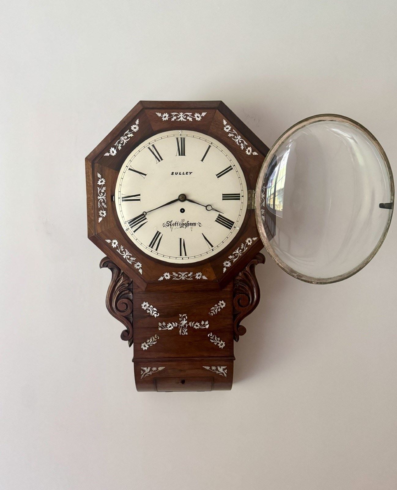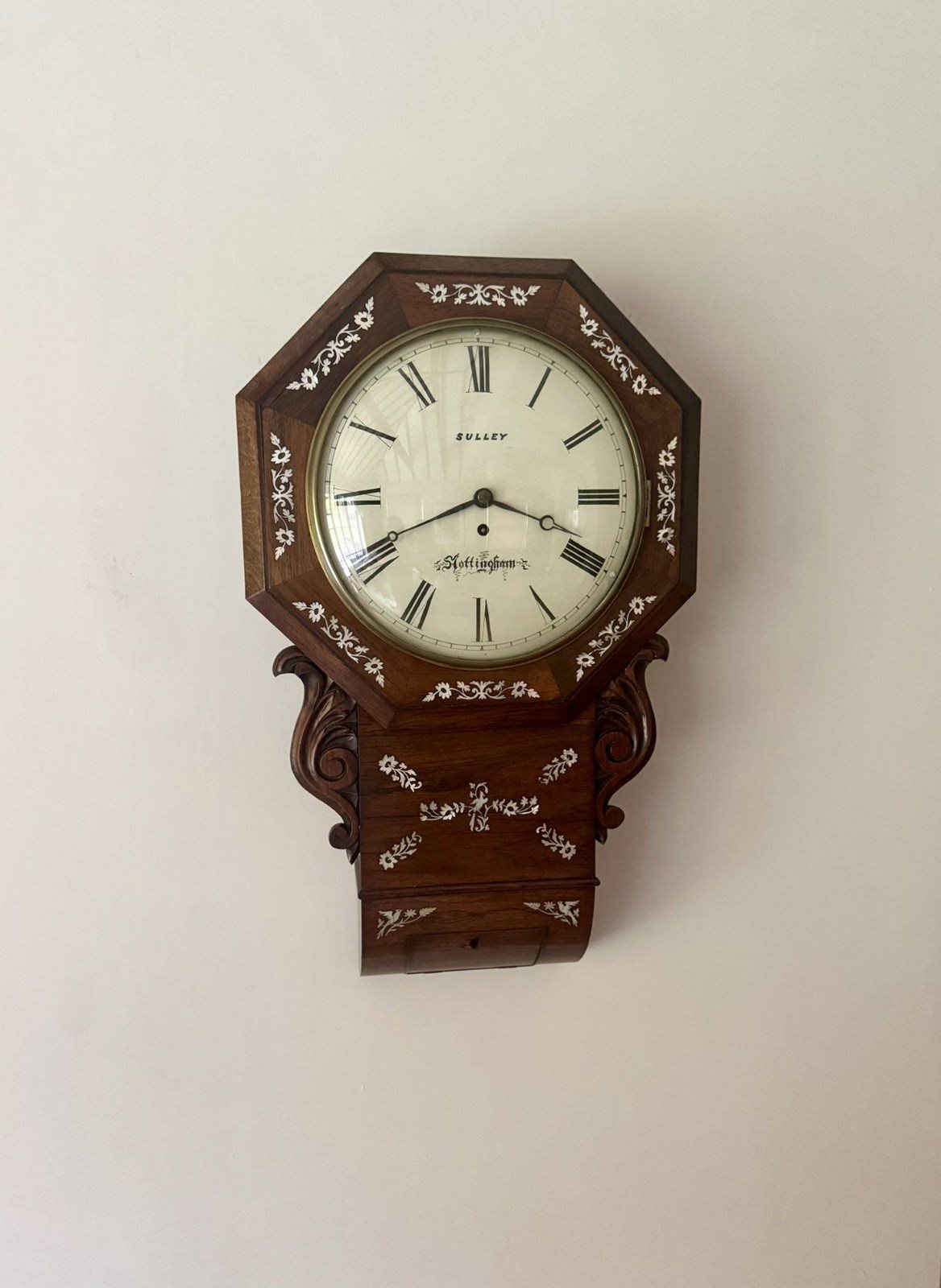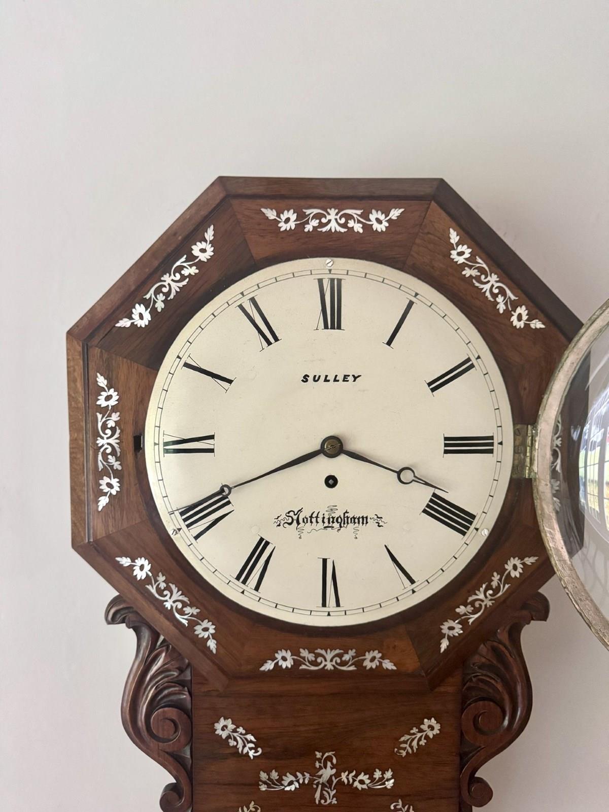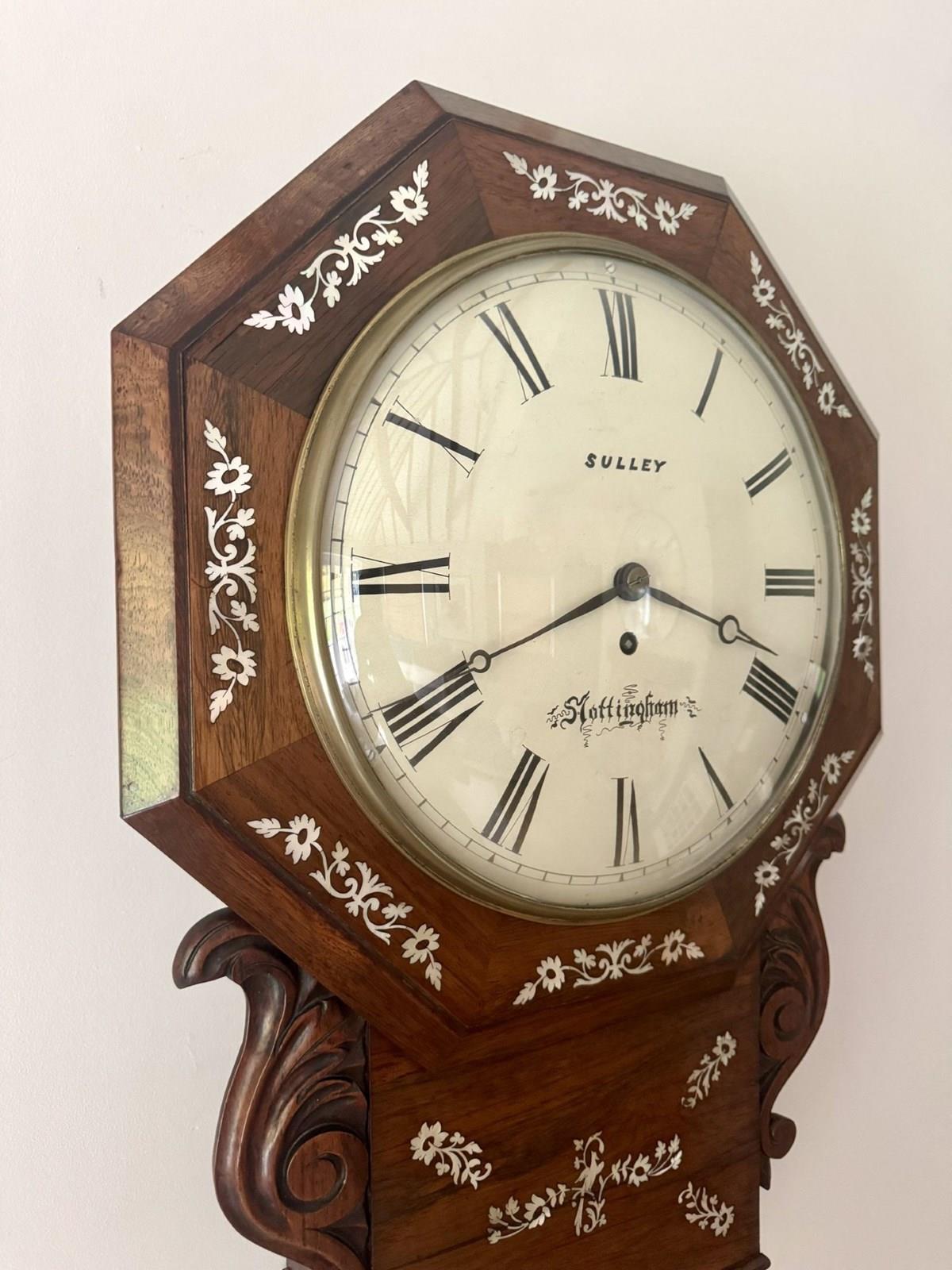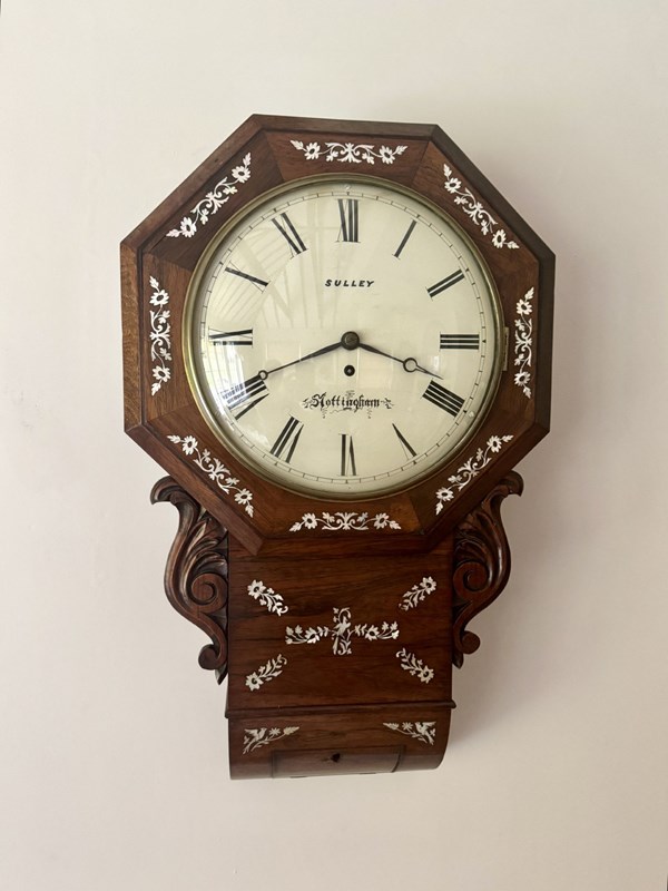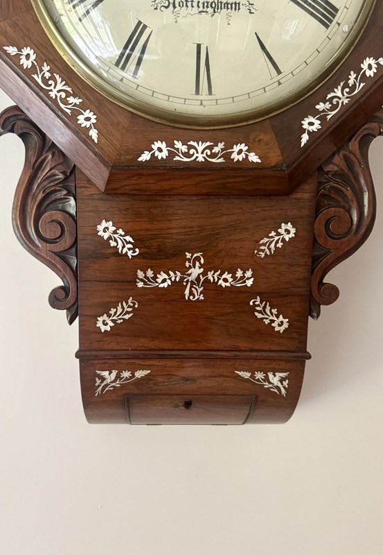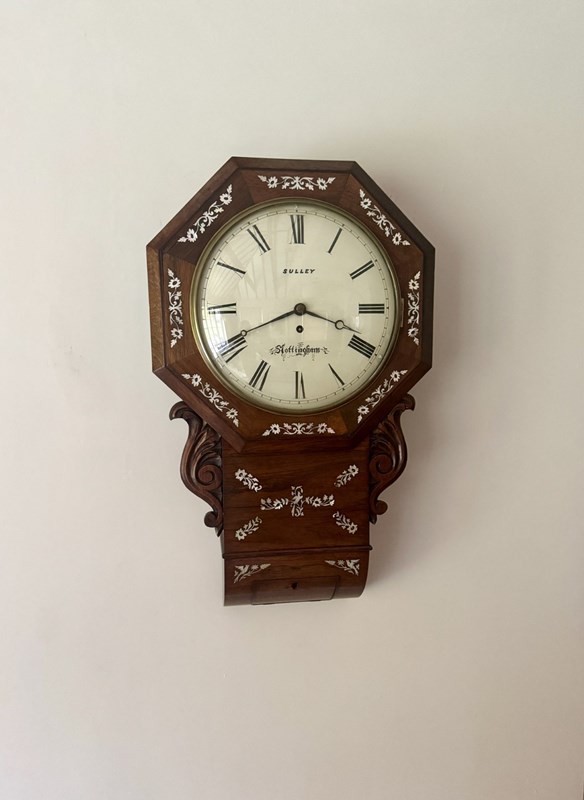 Antique 19Th Century Quality Rosewood Inlaid Drop Dial Wall Clock