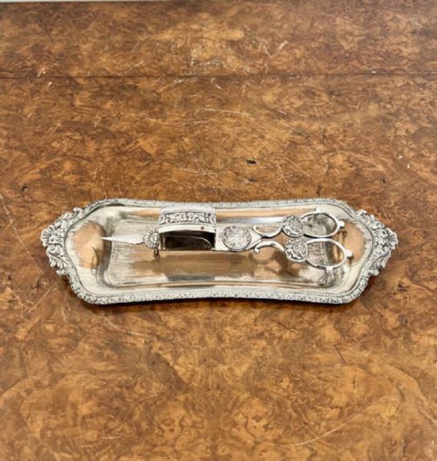 Antique Edwardian Pair Of Candle Snuffers & Tray