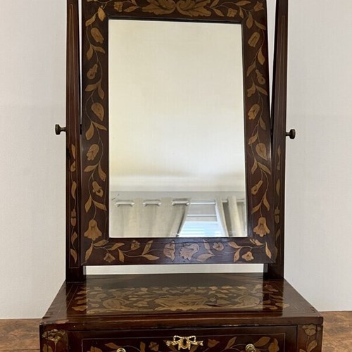 Quality mahogany dressing mirror having a quality rectangular shaped tilting mirror supported by turned mahogany columns above a mahogany base with three drawers, original brass knobs standing on original turned feet