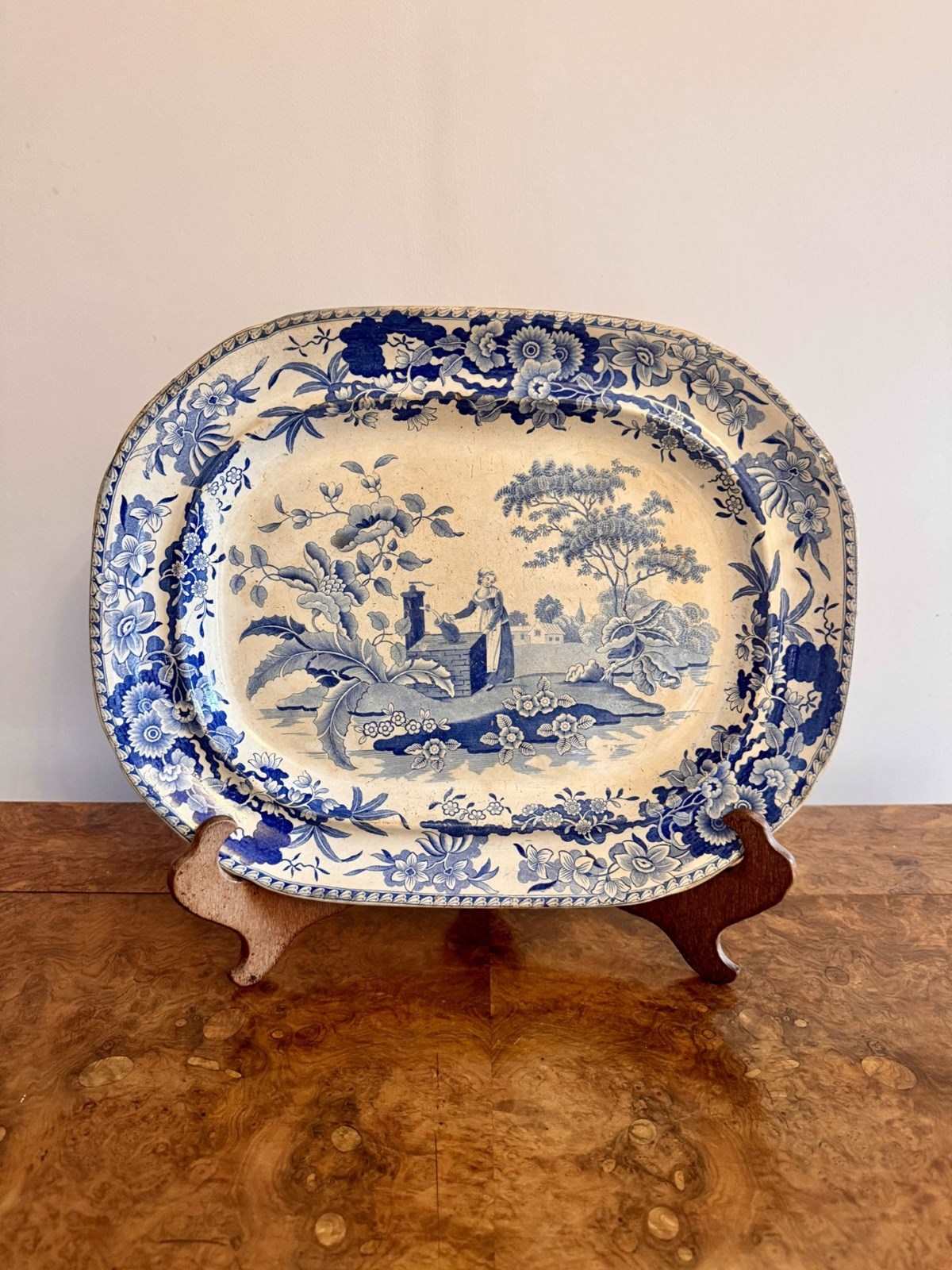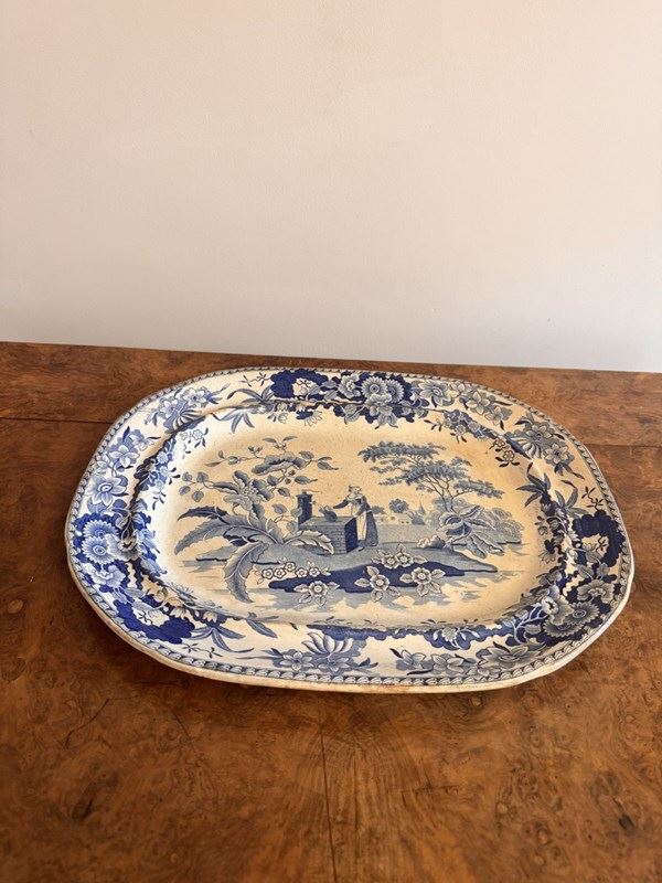 Antique Victorian Blue And White Meat Platter