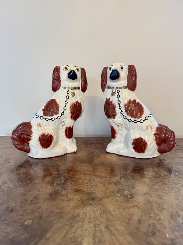 Attractive Pair Of Antique Victorian Staffordshire Dogs