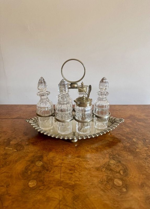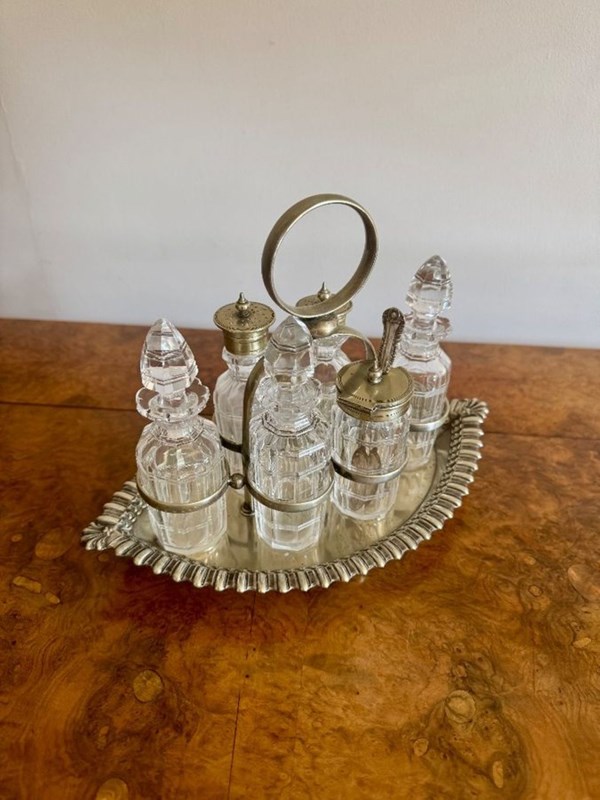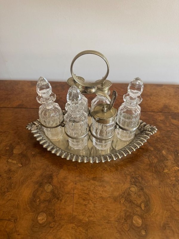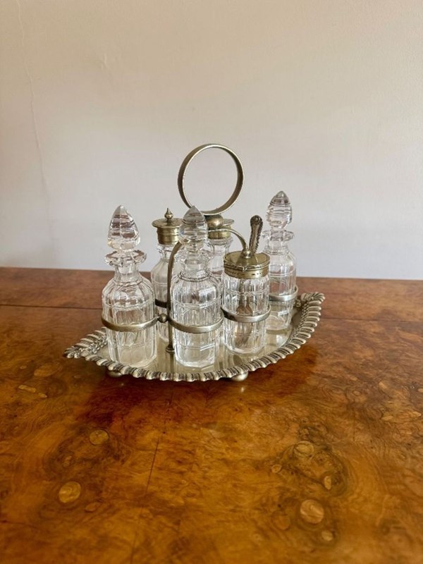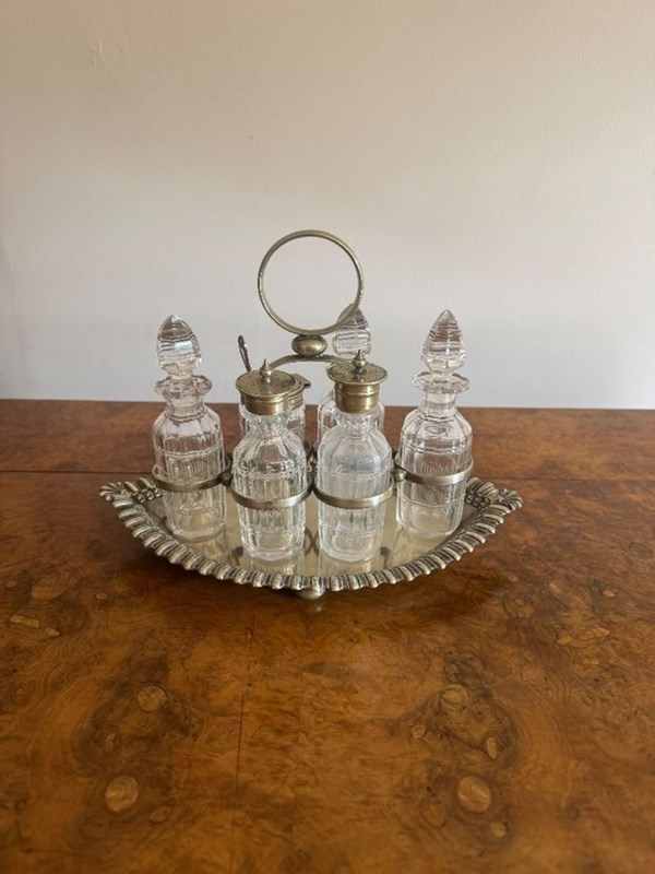 Beautiful Quality Antique Edwardian Silver Plated Six Bottle Cruet Set