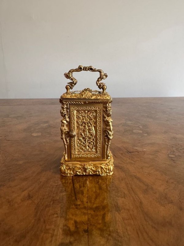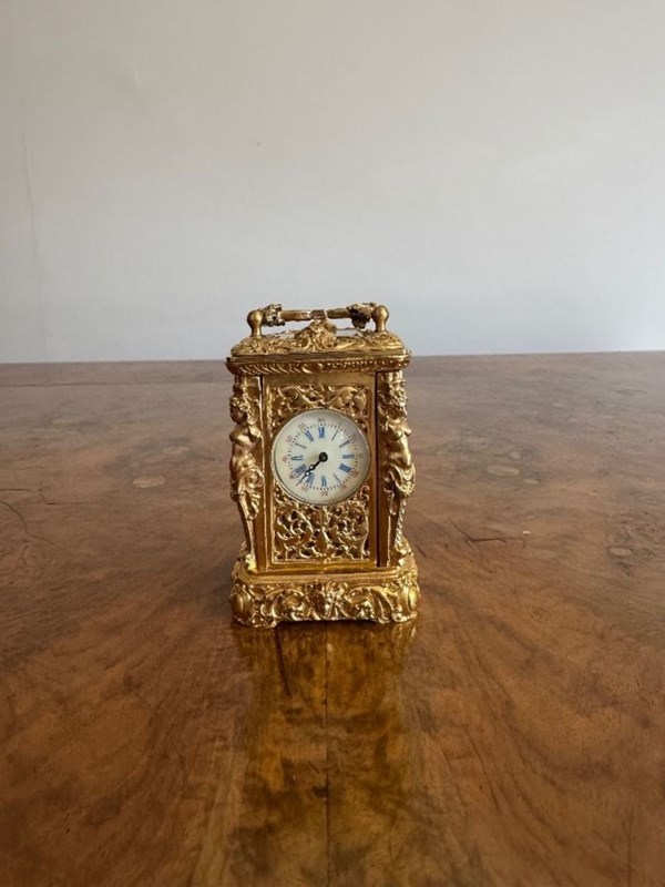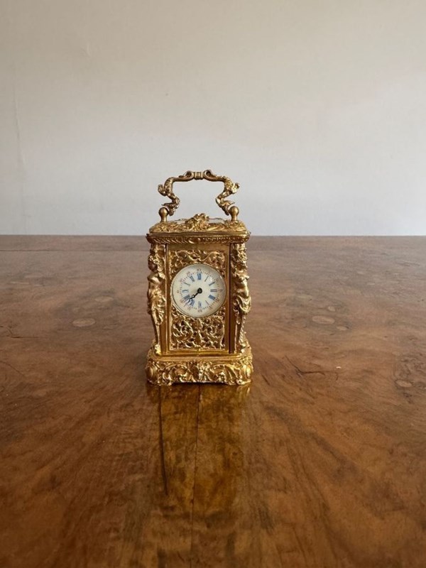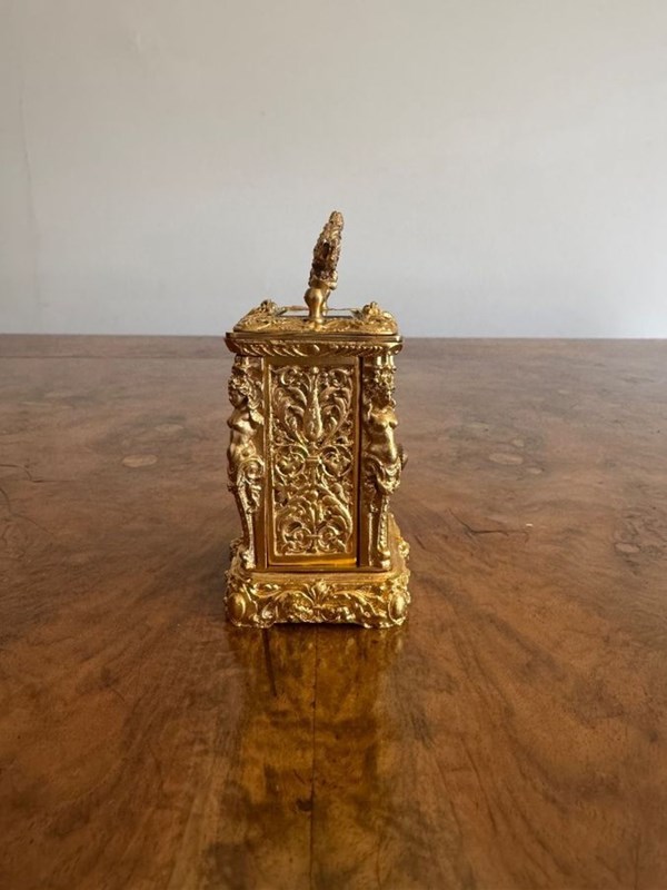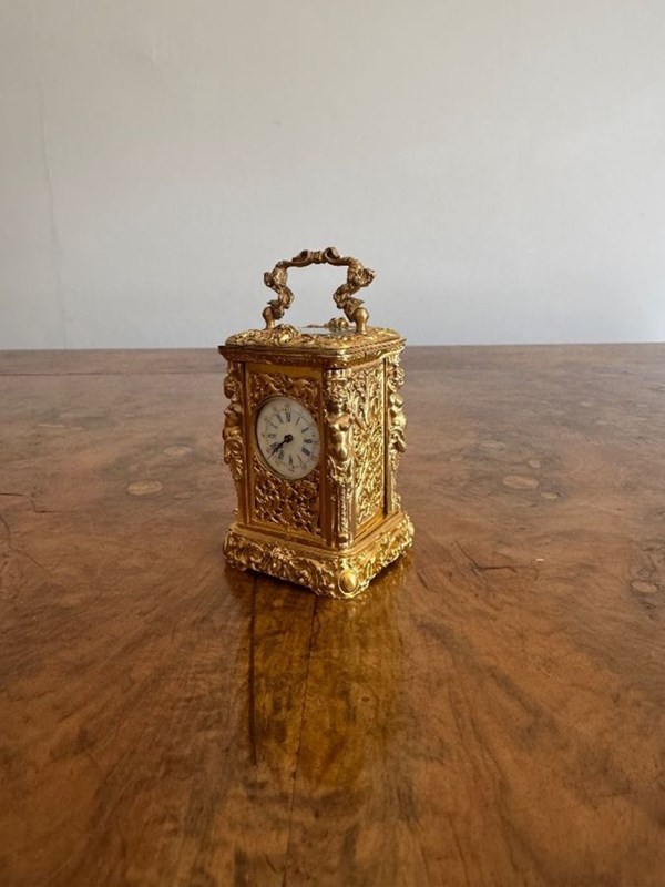 Beautiful Quality Antique Victorian Ornate Brass Miniature Carriage Clock
