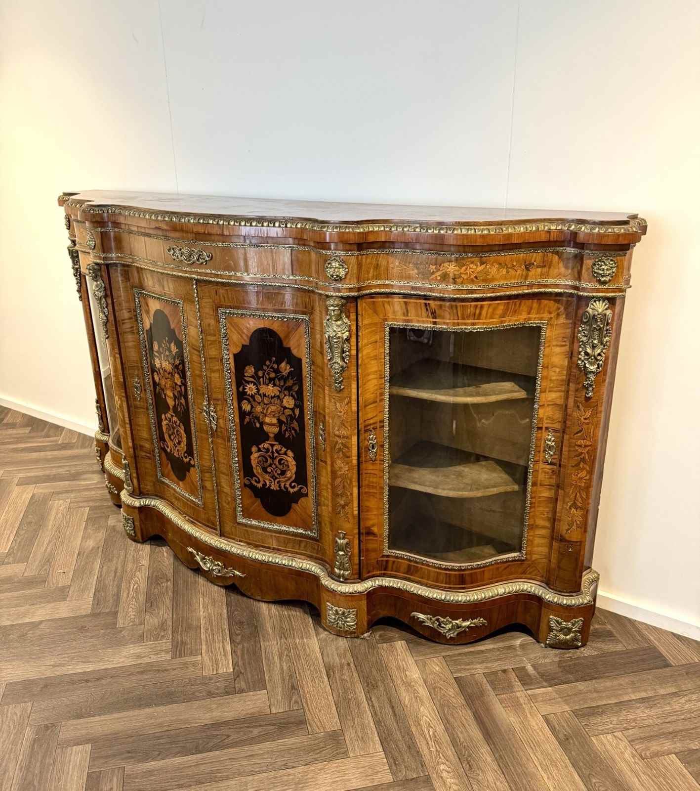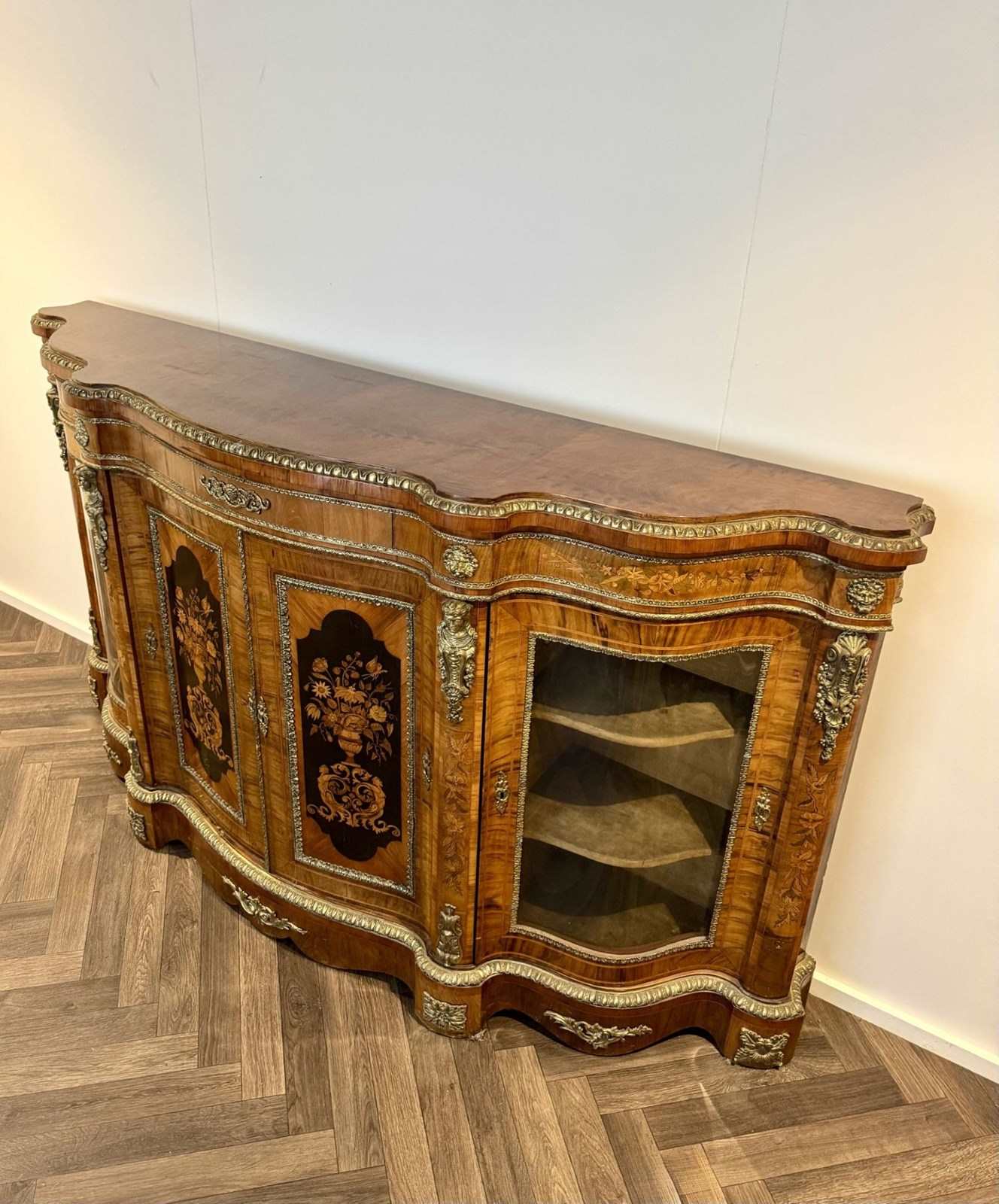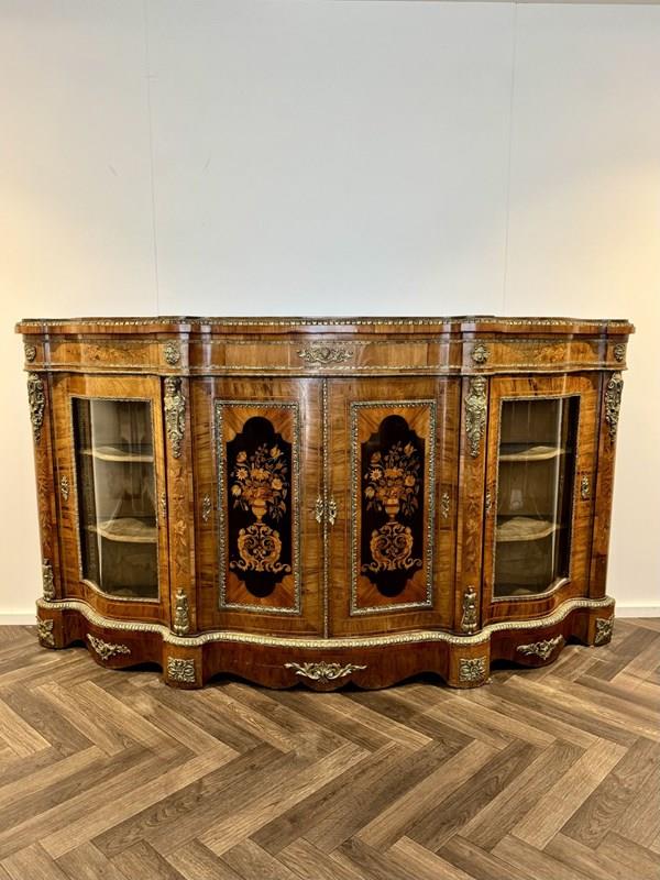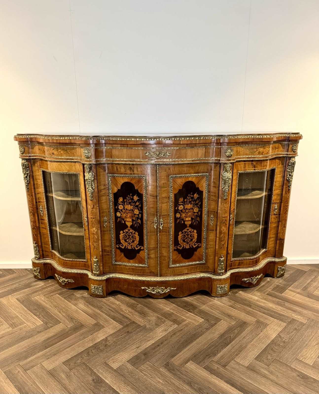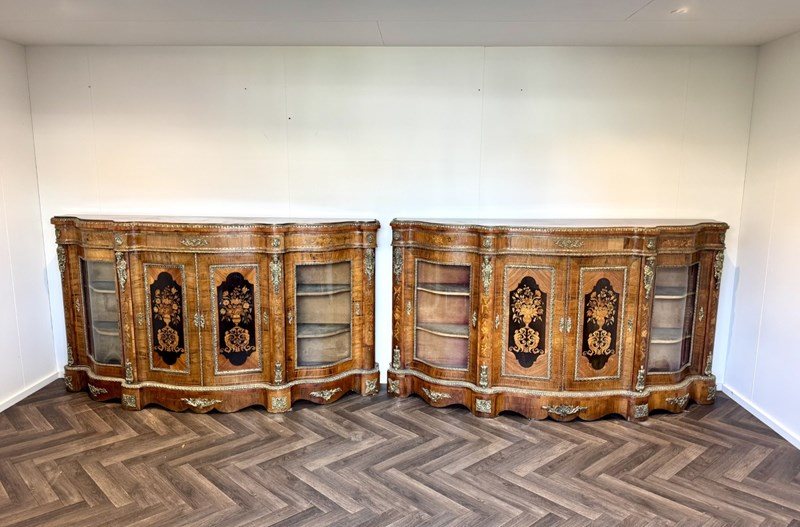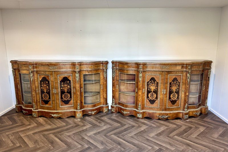 Exceptional Quality Pair Of Antique Victorian Walnut Marquetry Inlaid Credenzas