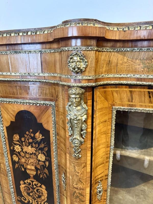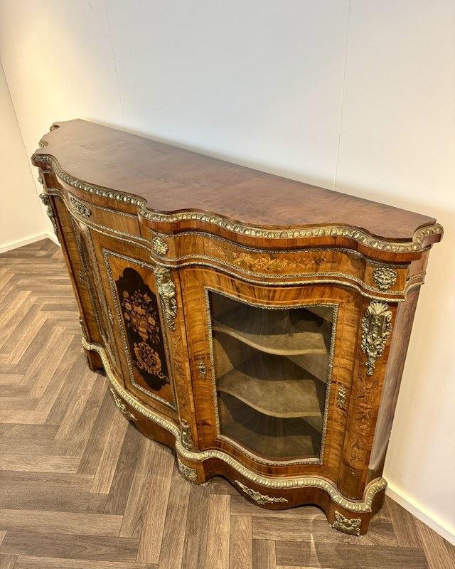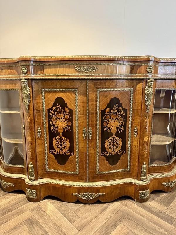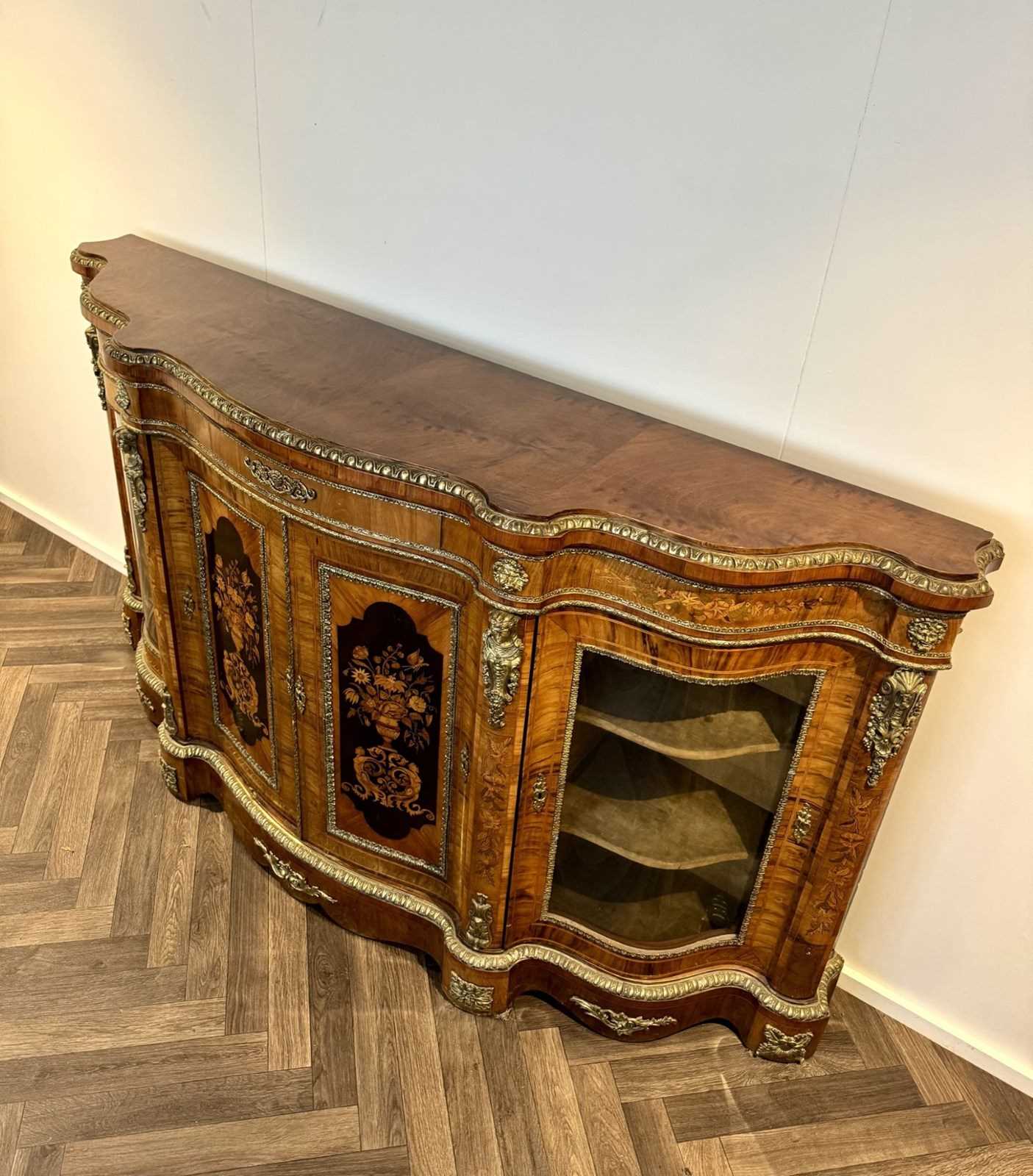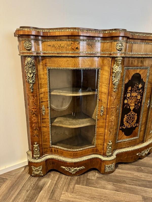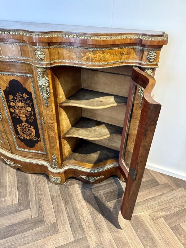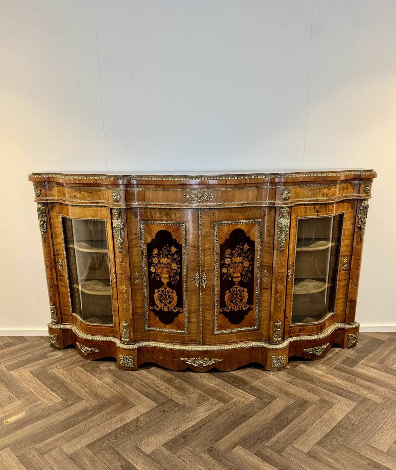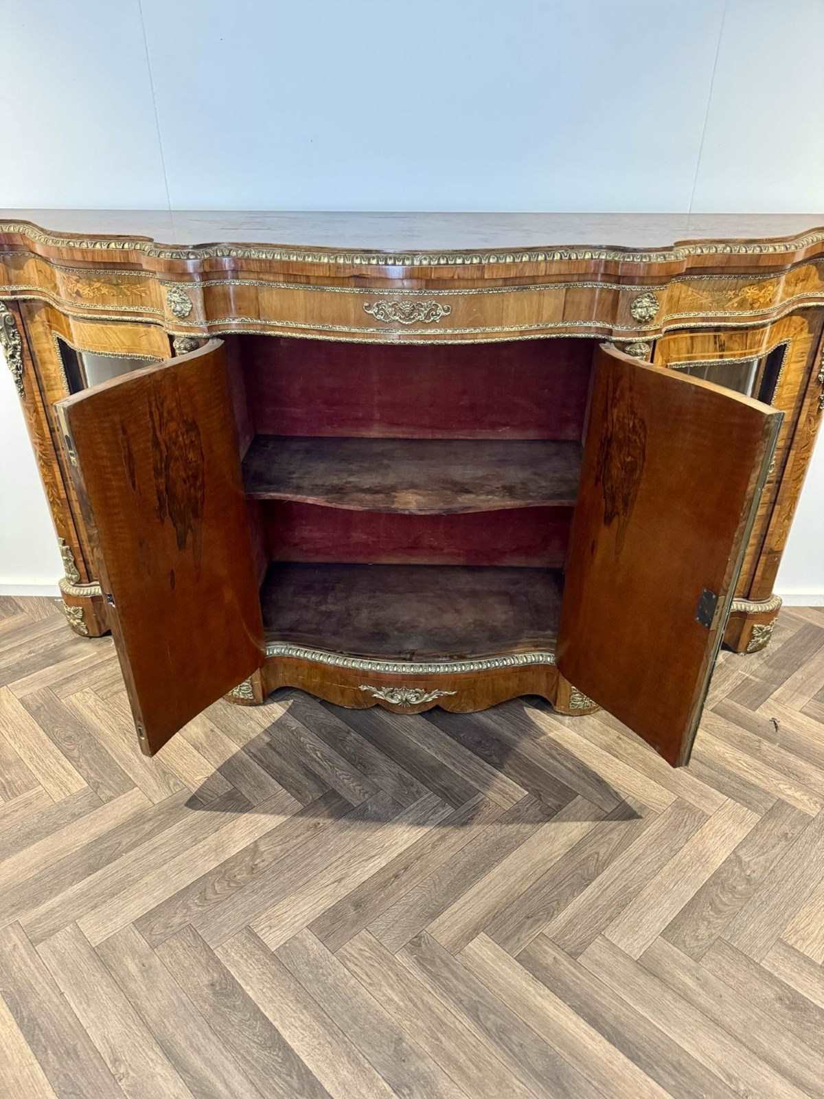 Exceptional Quality Pair Of Antique Victorian Walnut Marquetry Inlaid Credenzas