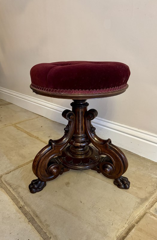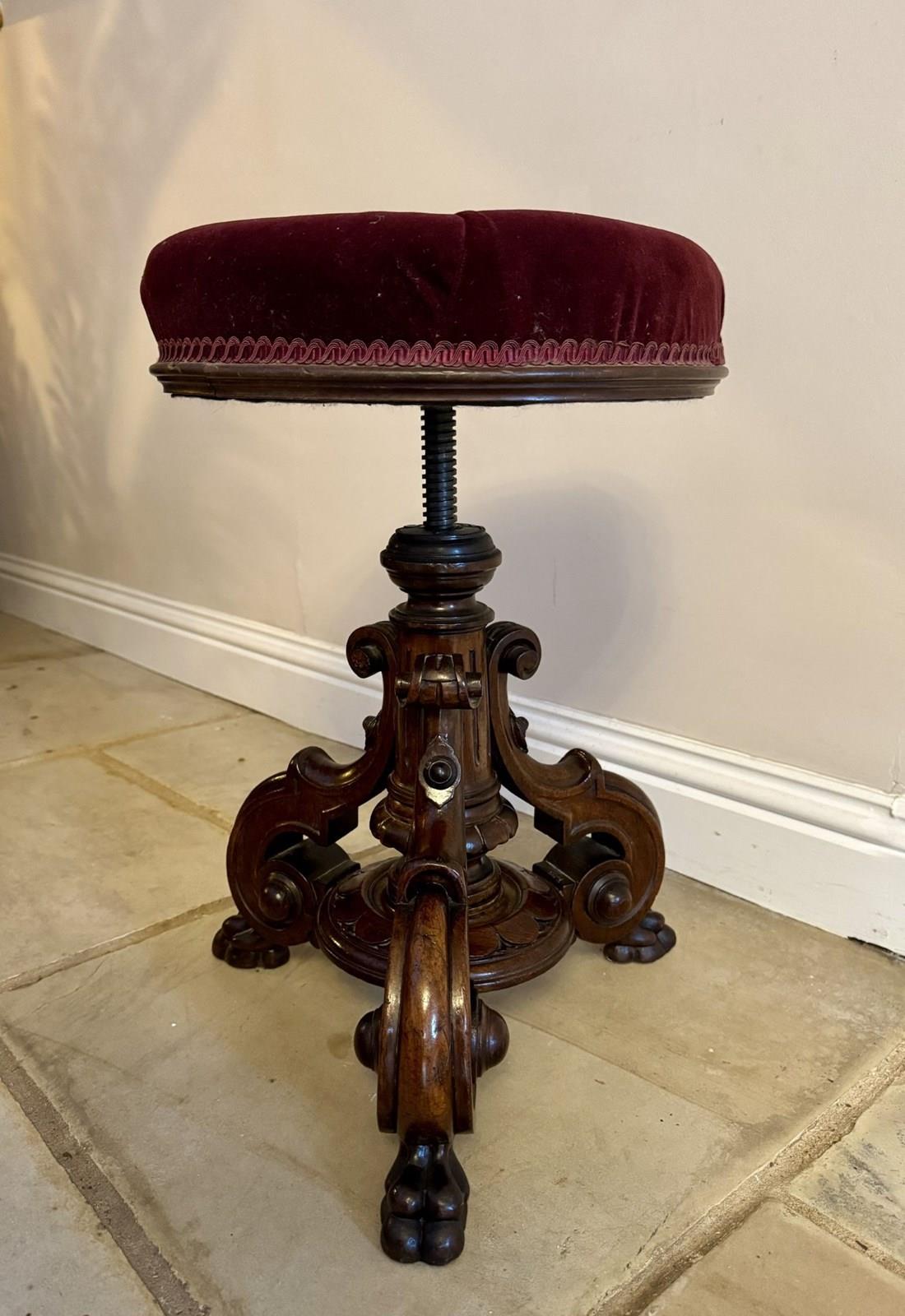Fantastic Quality Antique Victorian Carved Walnut Revolving Piano Stool