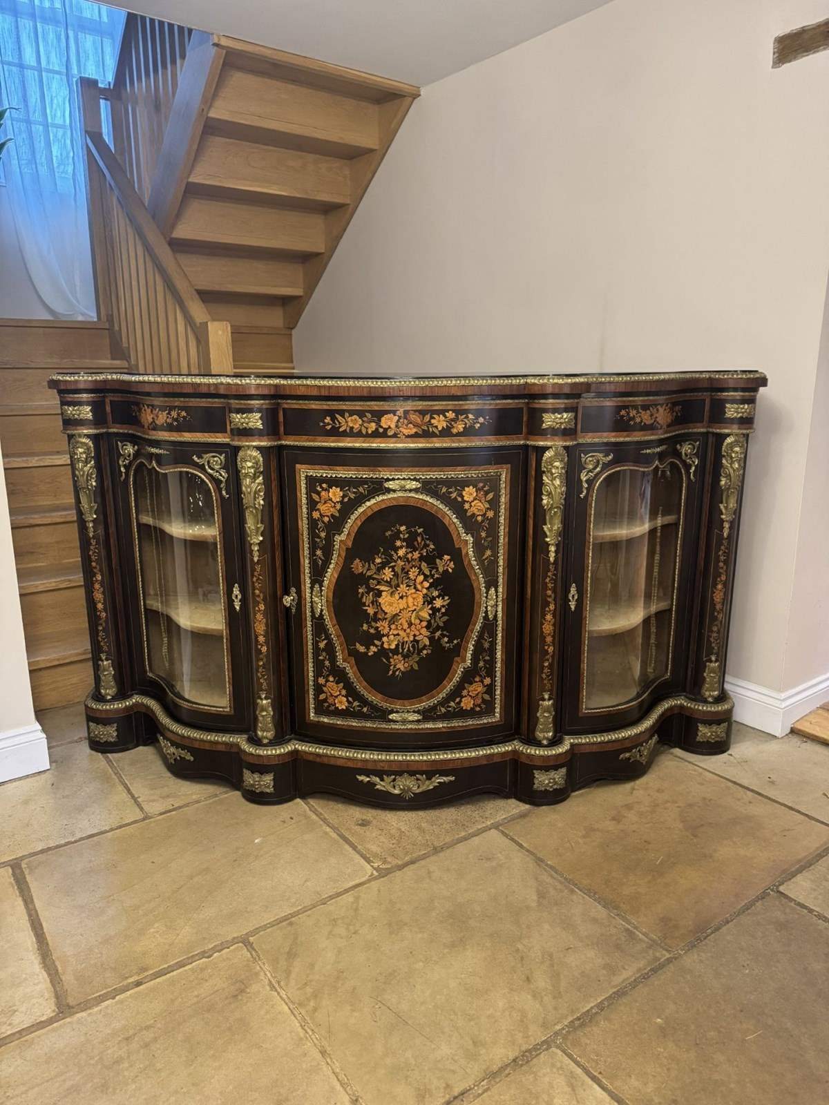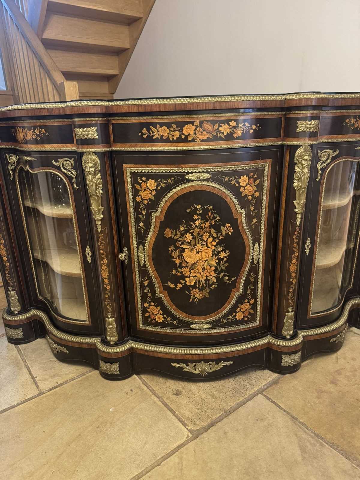 Fantastic Quality Antique Victorian Serpentine Fronted Marquetry Credenza