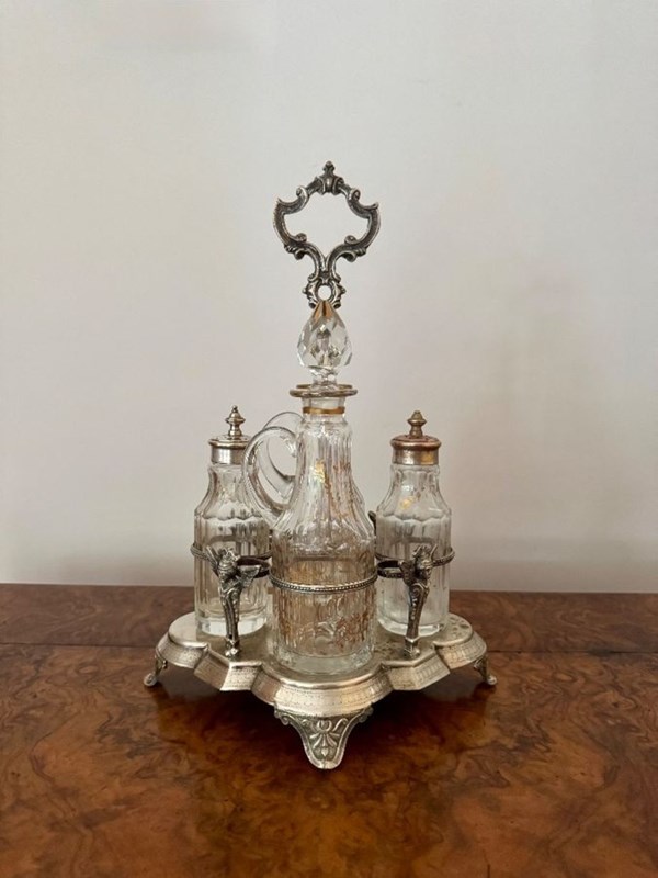 Fine Quality Antique Victorian Ornate Silver Plated Cruet Set