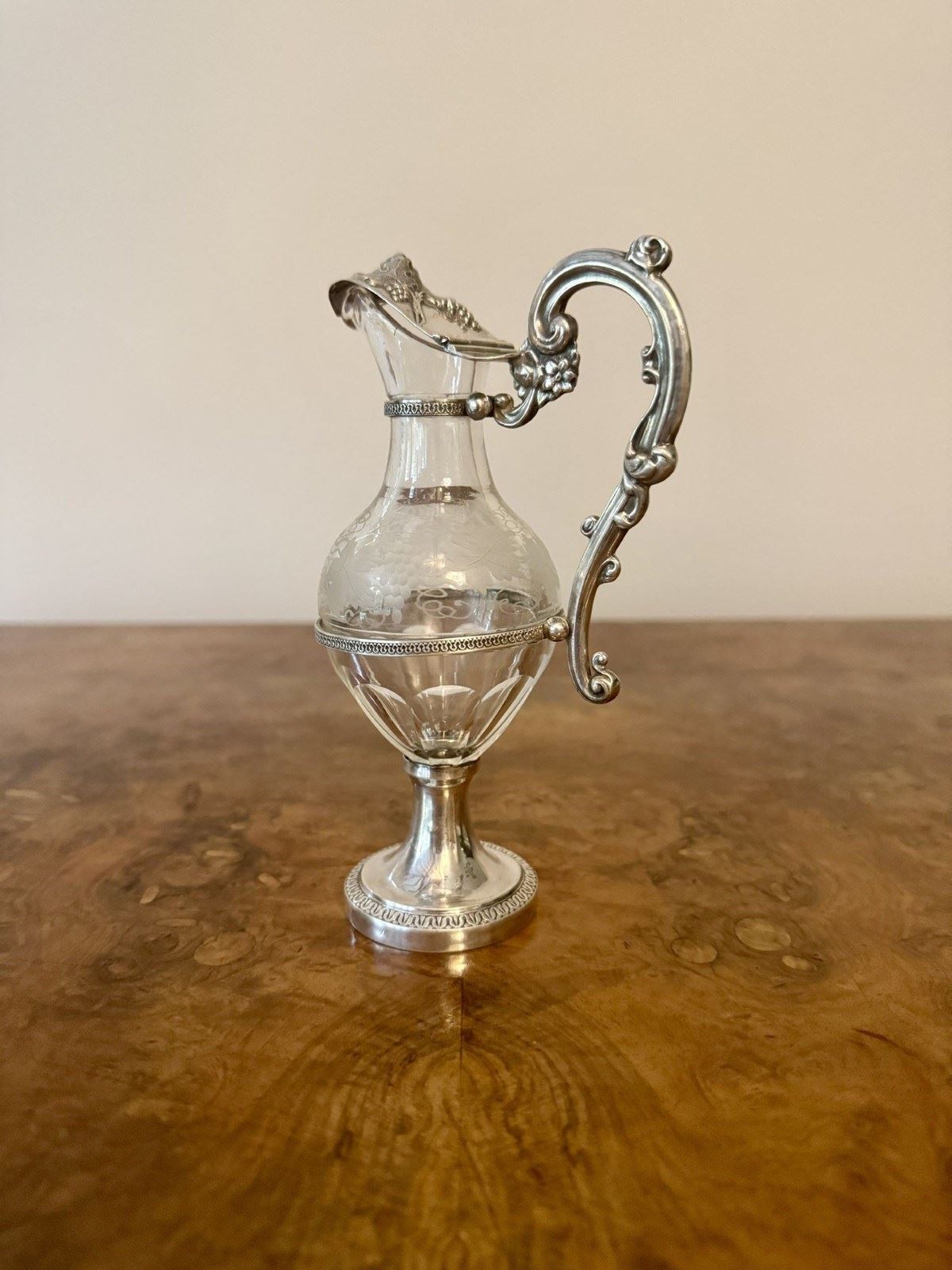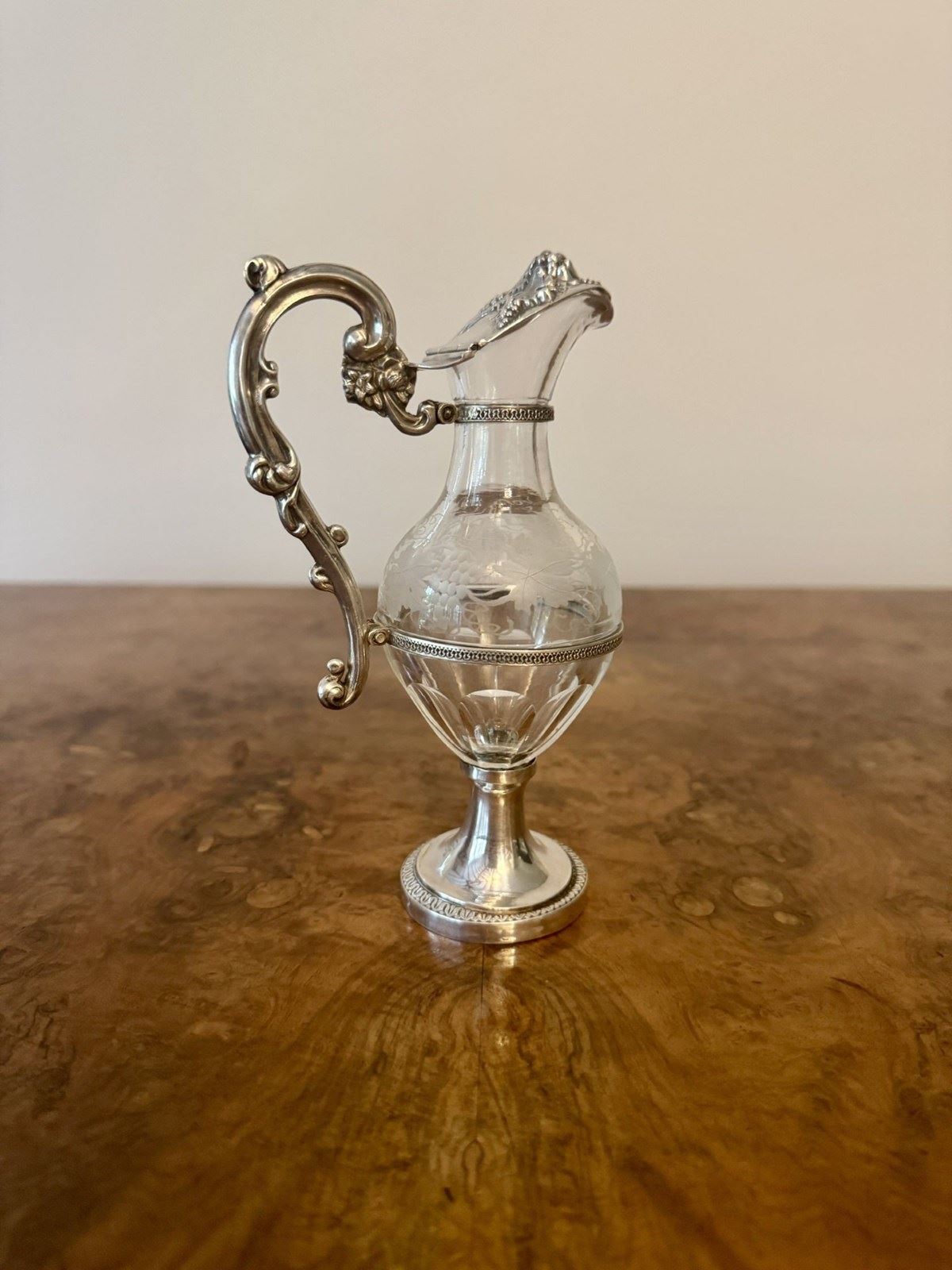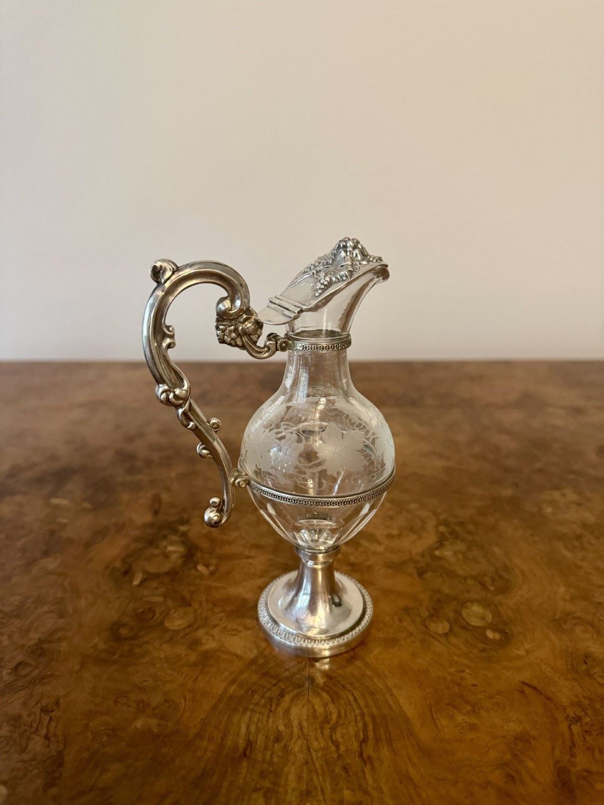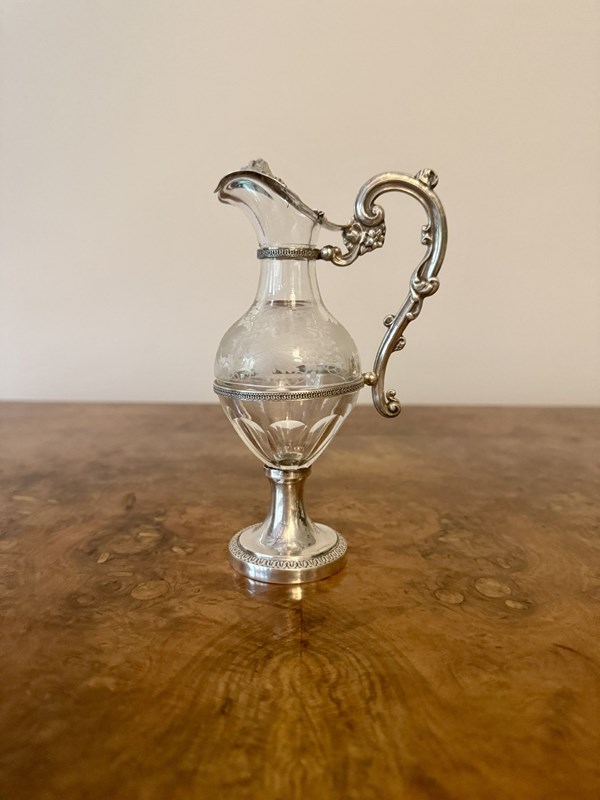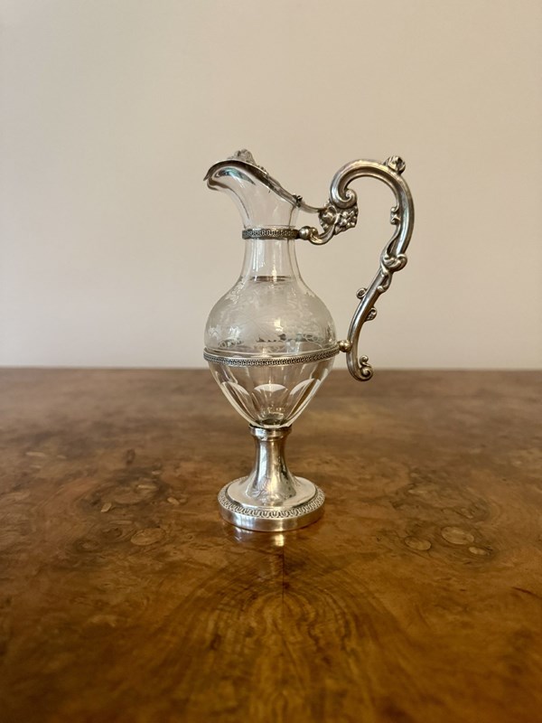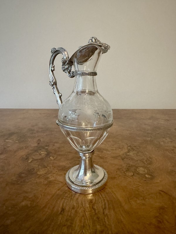 Fine Quality French Antique 19Th Century Silver & Glass Ewer