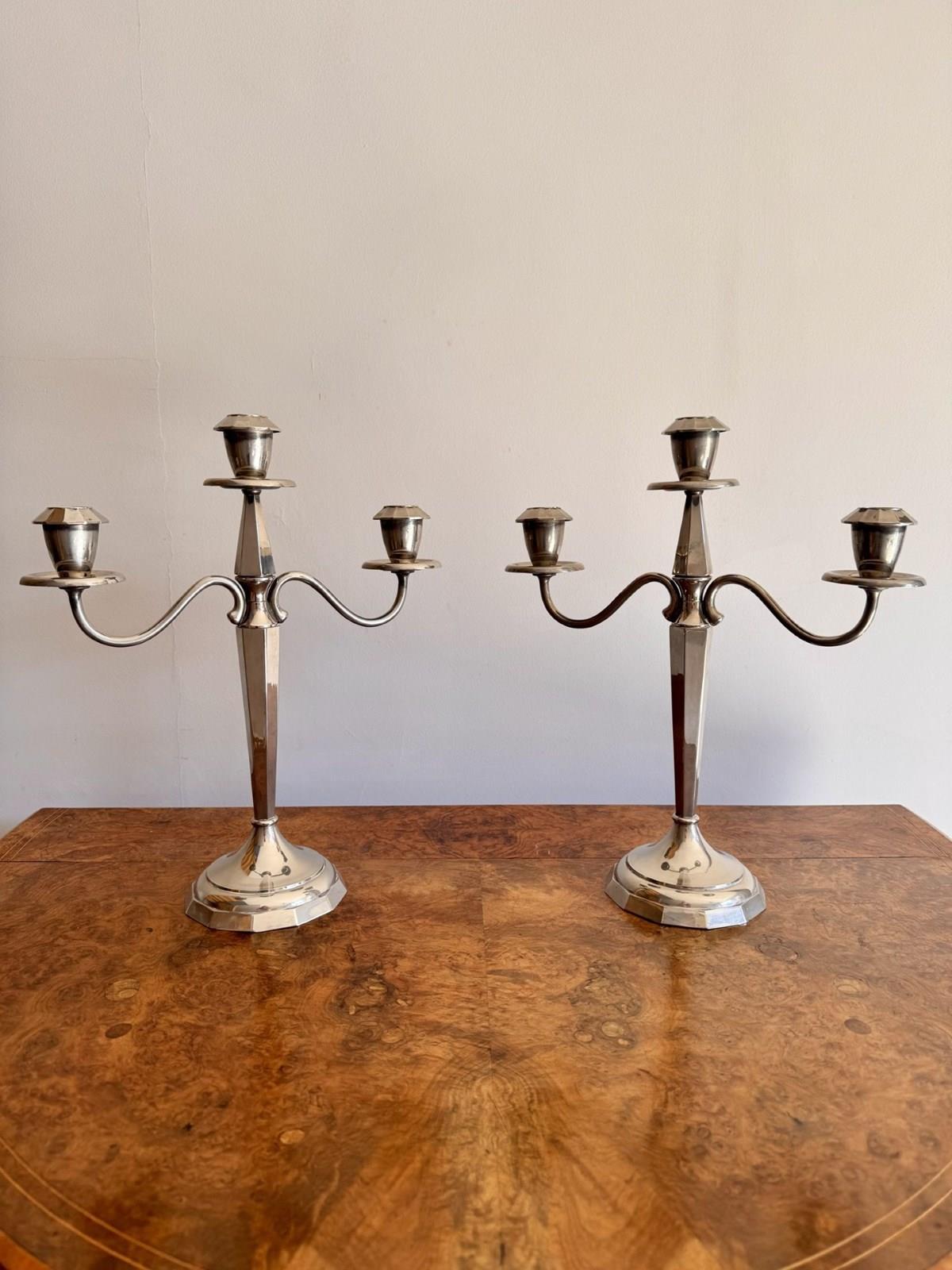 Fine Quality Pair Of Antique Edwardian Silver Plated Candelabras