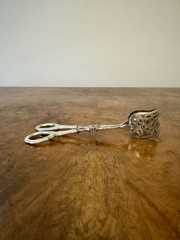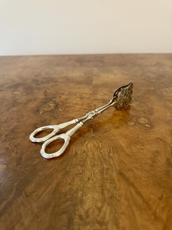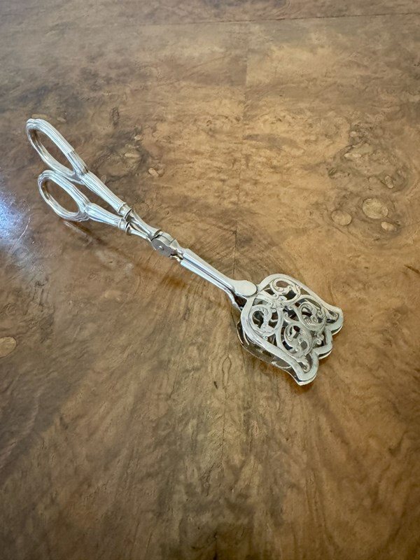 Fine Quality Pair Of Antique Silver Serving Tongs