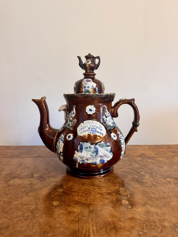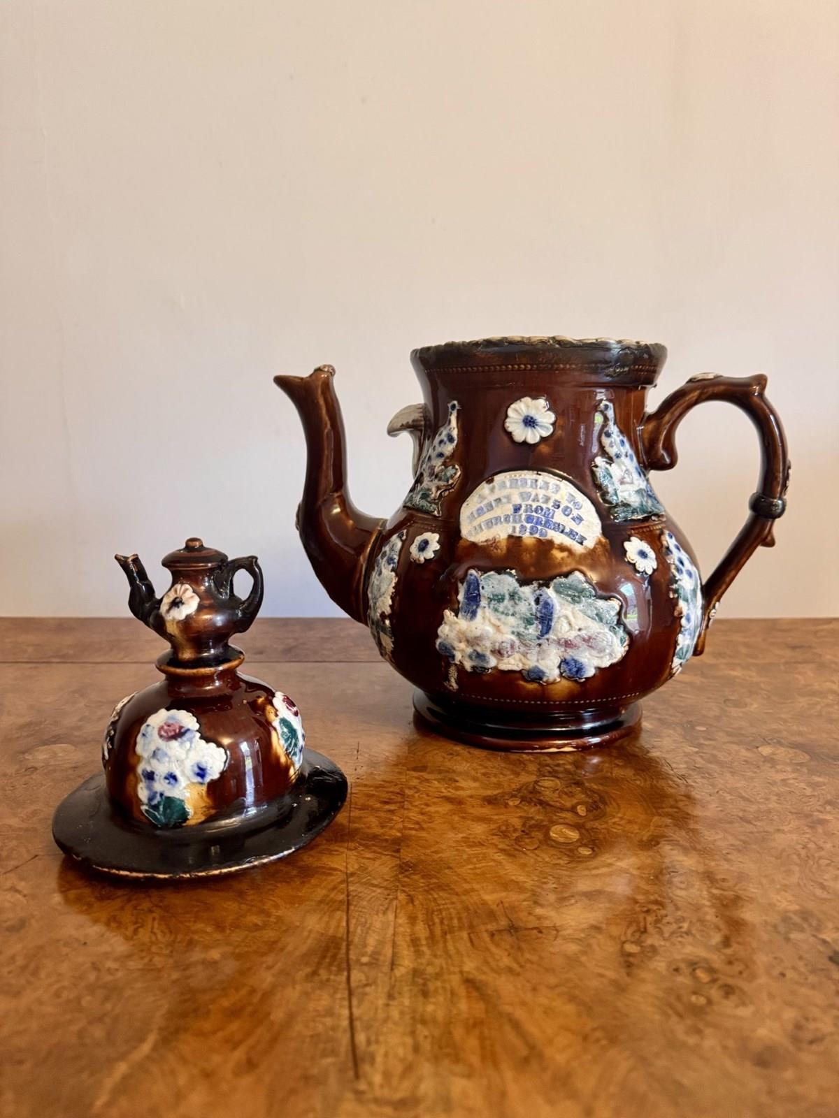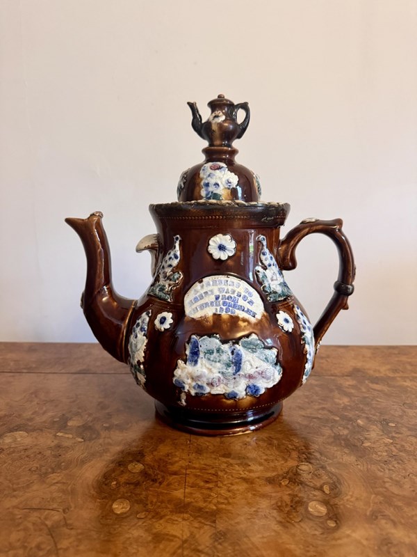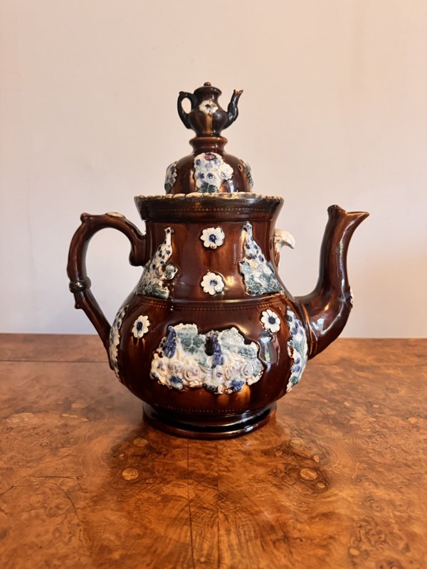 Large Unusual Antique Bargeware Tea Pot