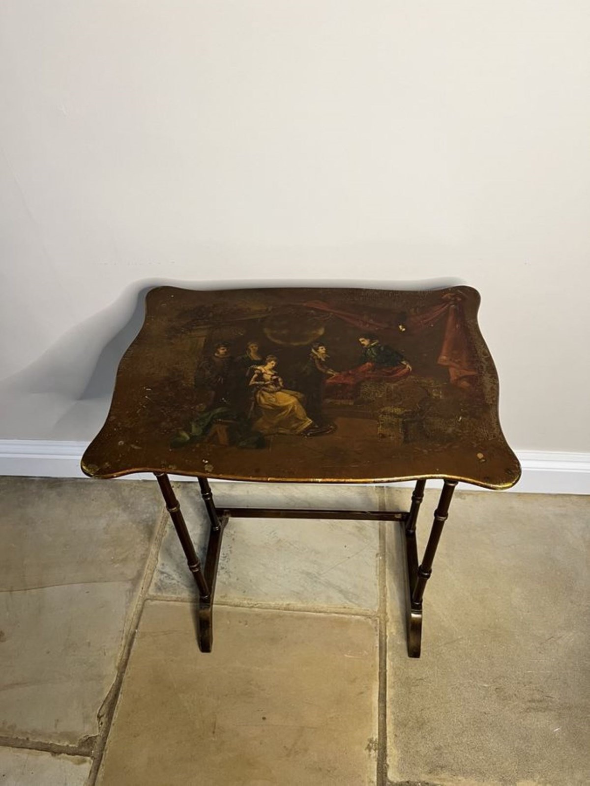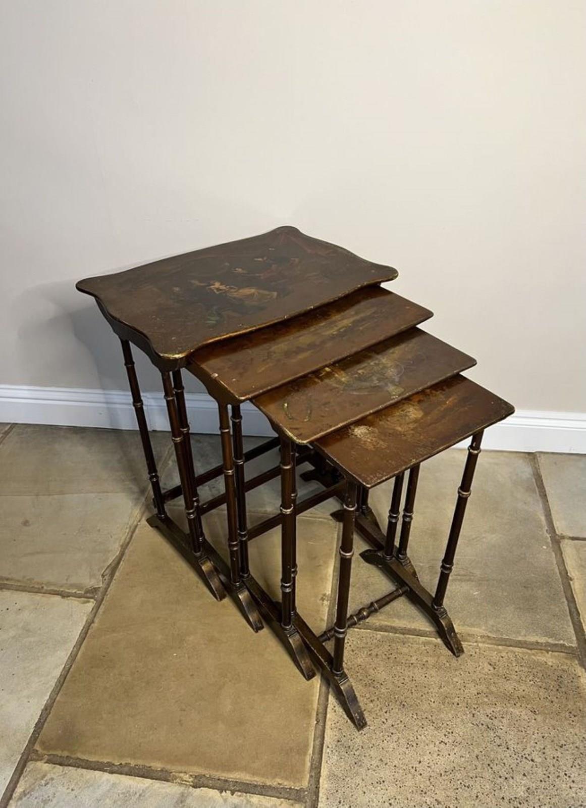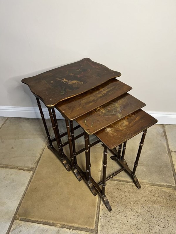 Lovely Nest Of Four Antique Edwardian Quality Decorated Tables