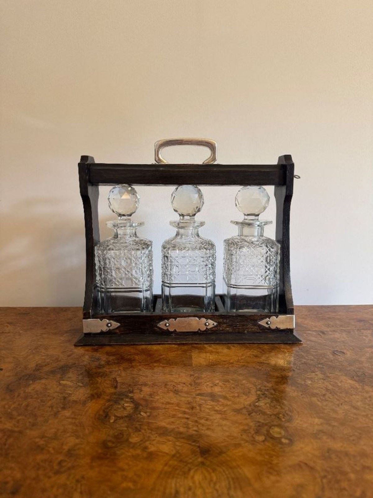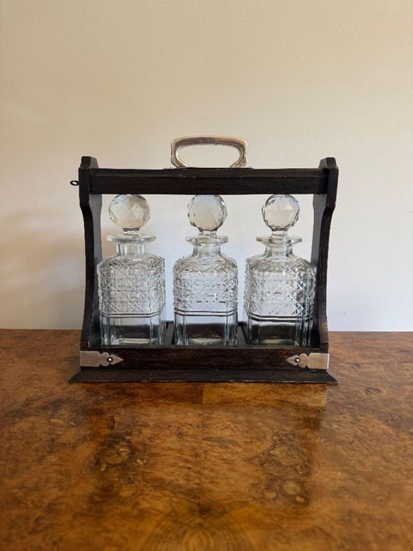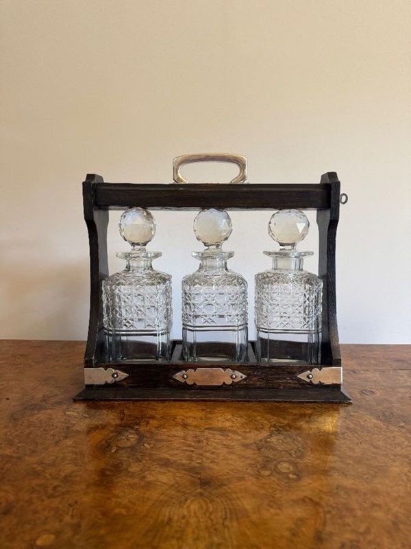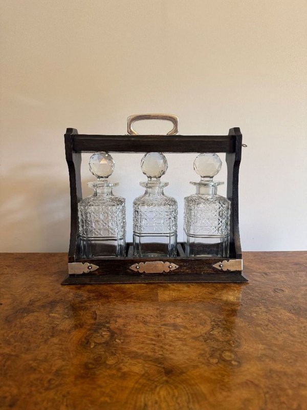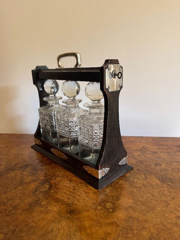Lovely Quality Antique Edwardian Oak And Silver Plated Tantalus