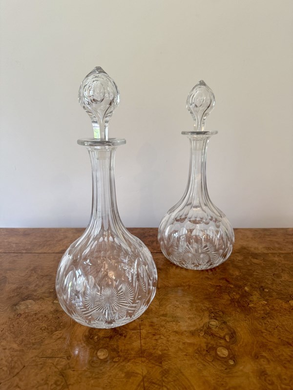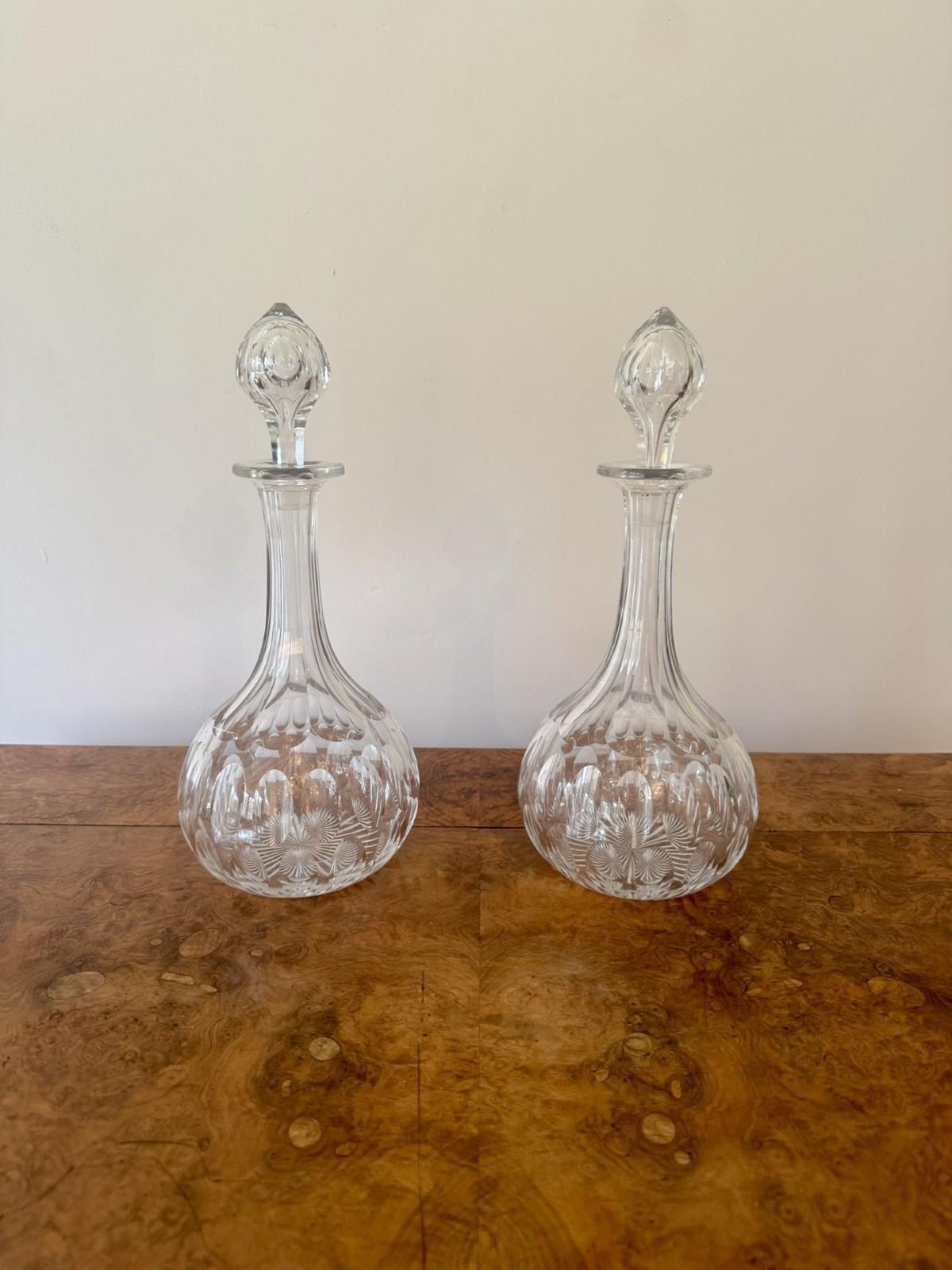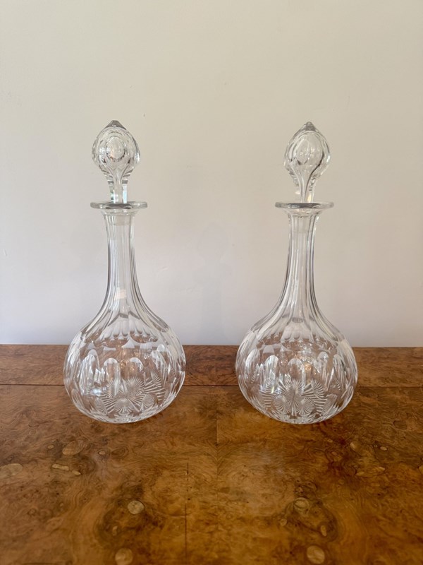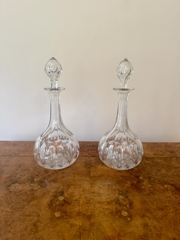 Lovely Quality Pair Of Antique Edwardian Glass Decanters