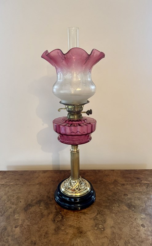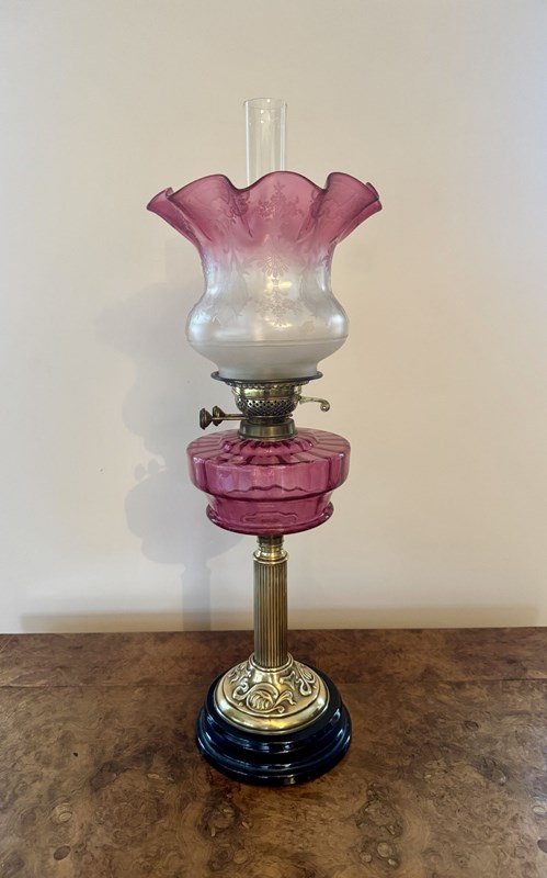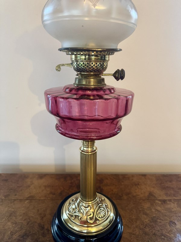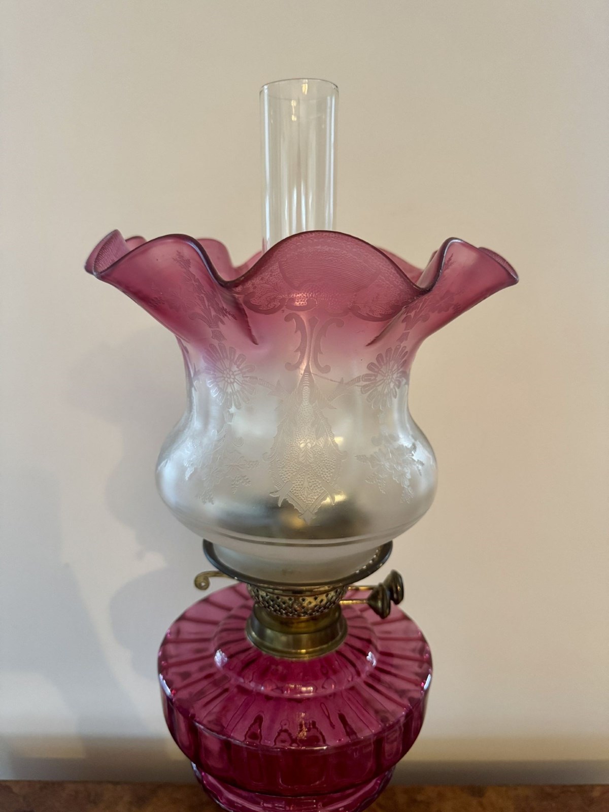 Outstanding Quality Antique Victorian Cranberry Glass Oil Lamp