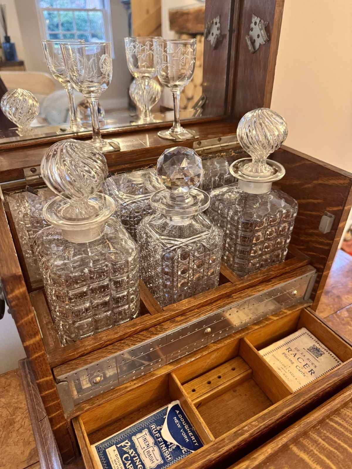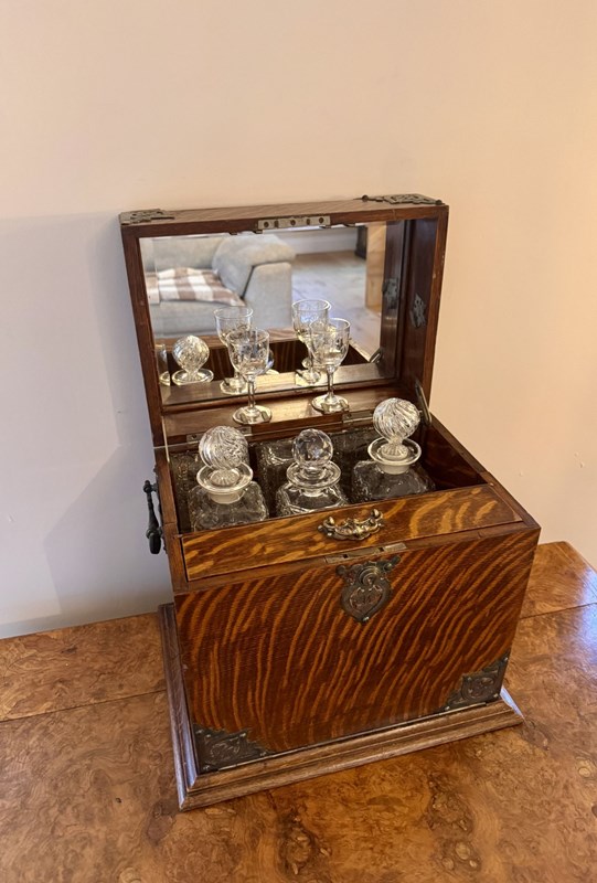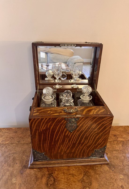 Outstanding Quality Antique Victorian Oak Decanter And Games Box