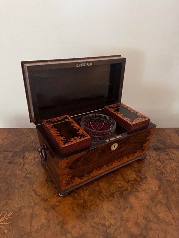 Outstanding Quality Antique Victorian Rosewood And Burr Maple Tea Caddy