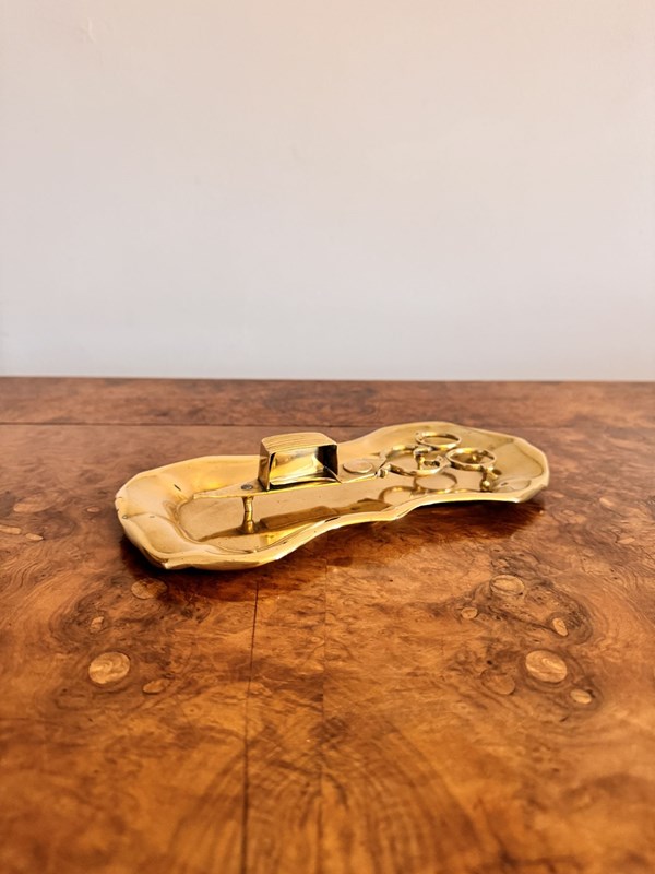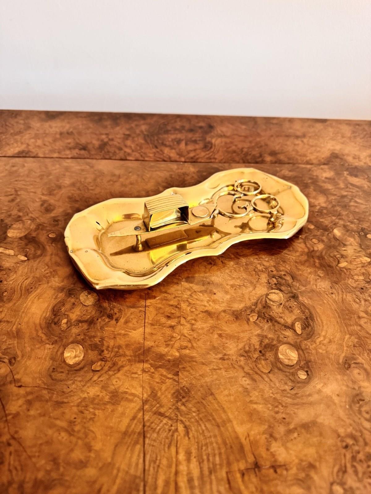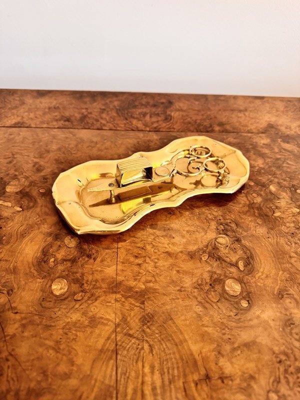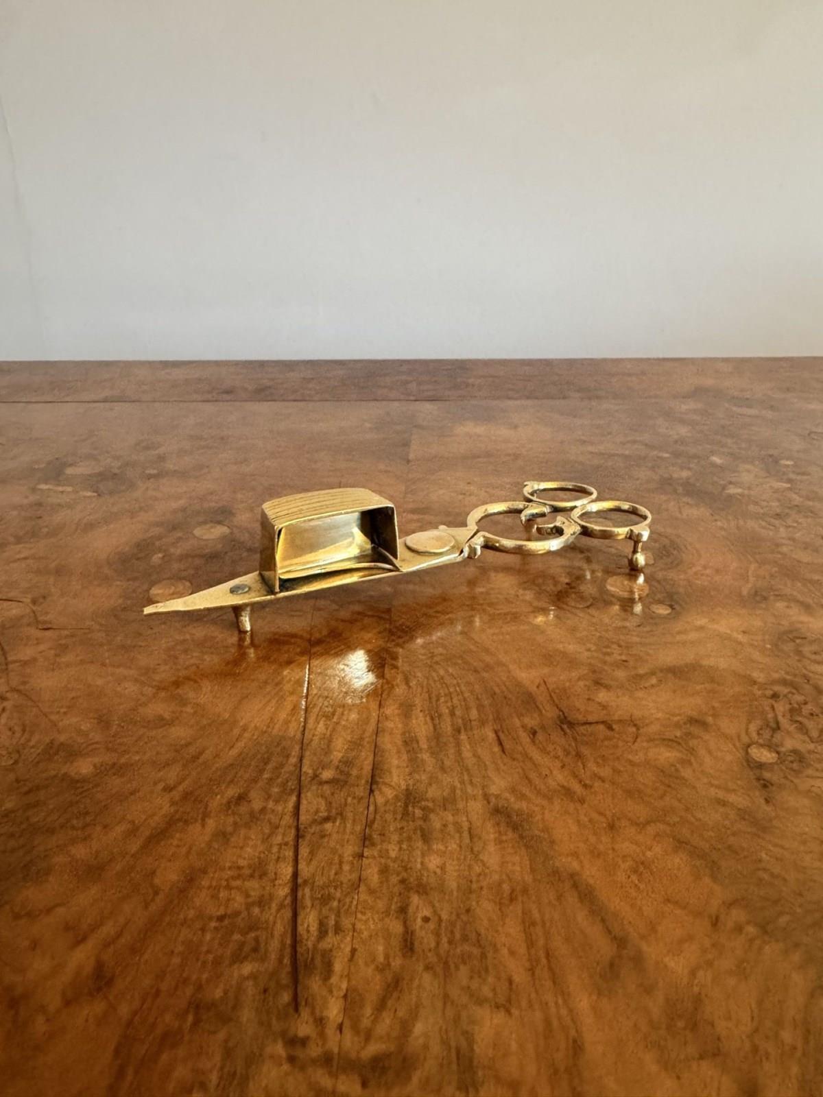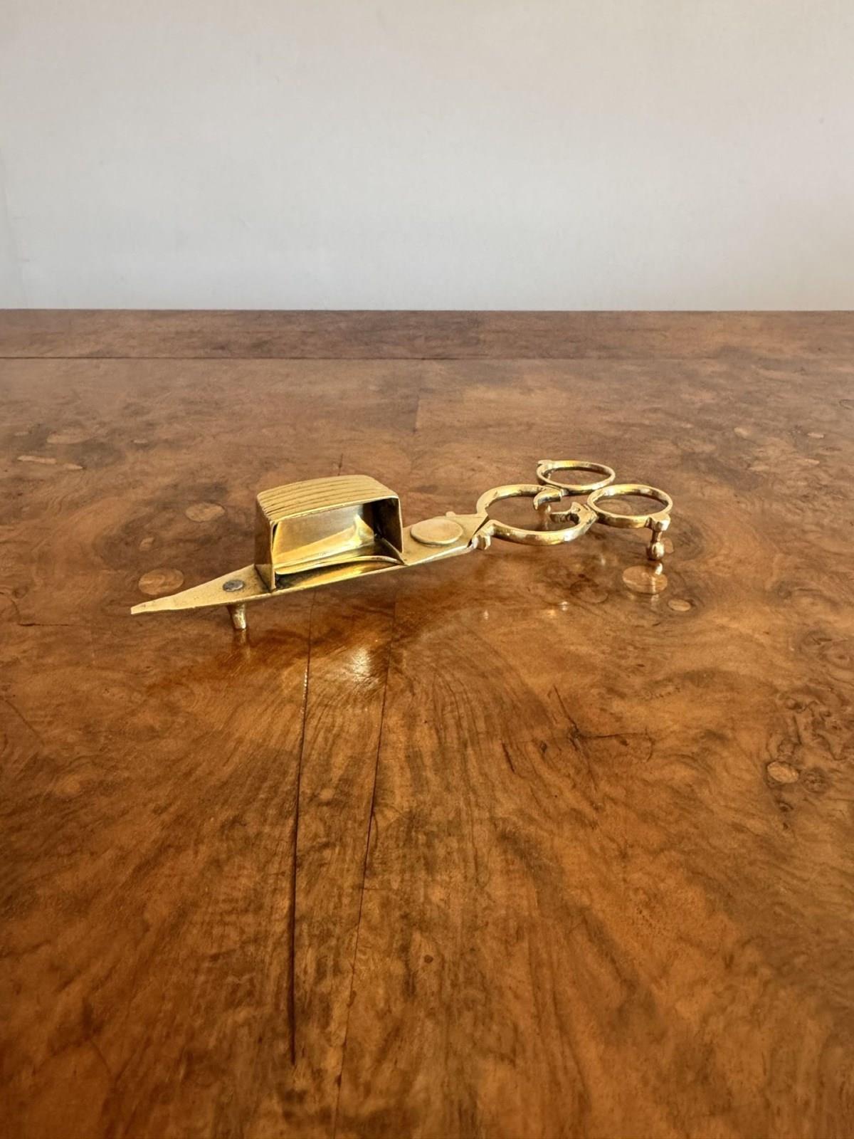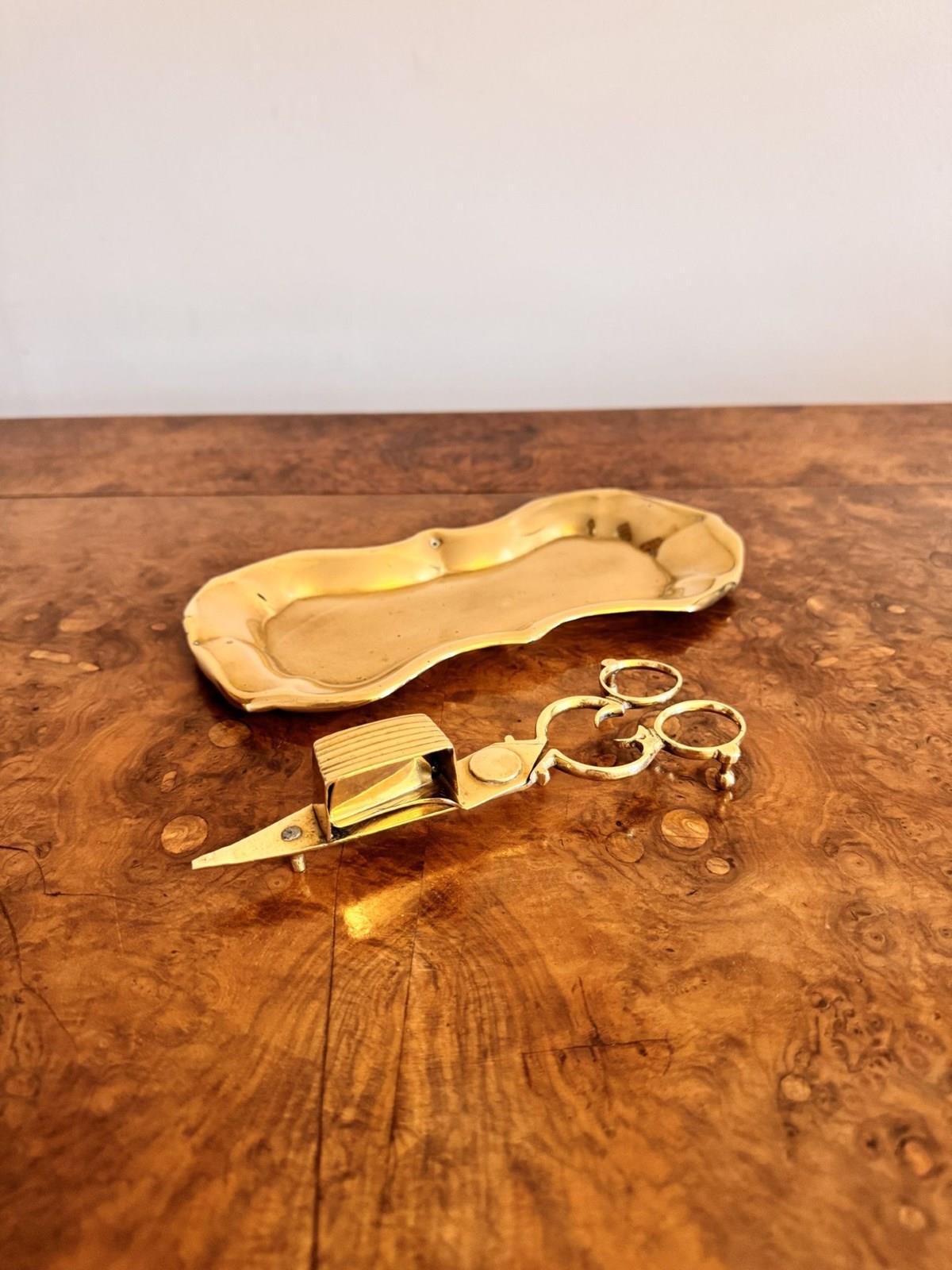 Pair Of Antique Edwardian Brass Candle Snuffers & Tray
