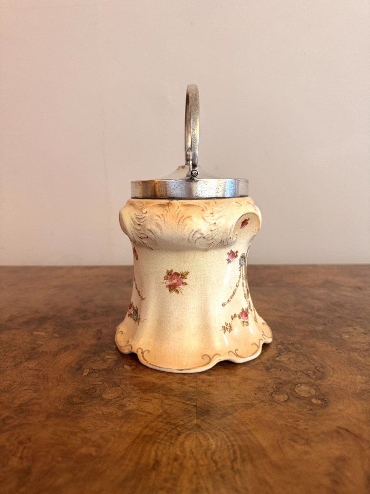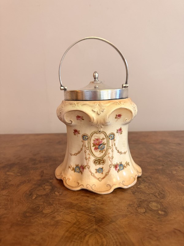 Pretty Quality Antique Edwardian Crown Devon Biscuit Barrel