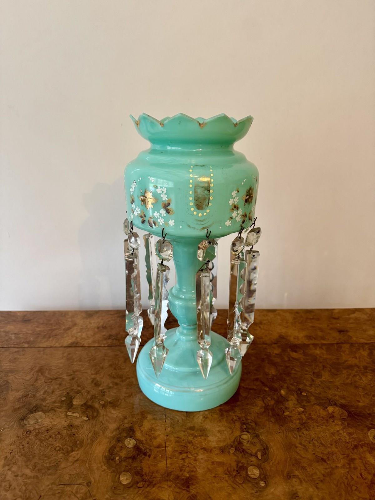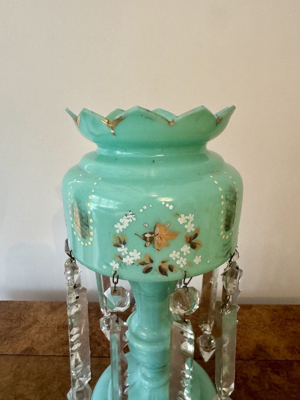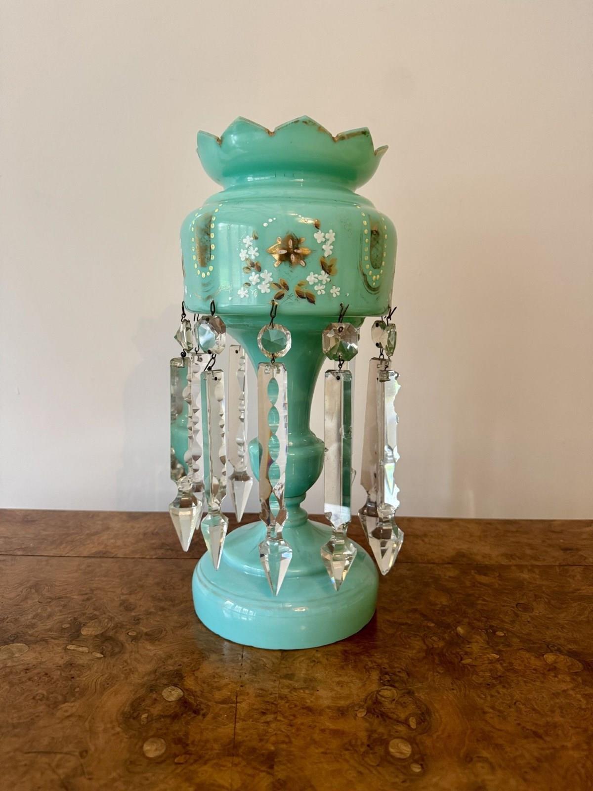 Pretty Quality Large Antique Victorian Turquoise Glass Lustre