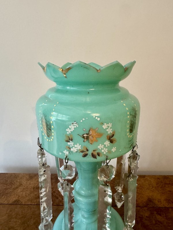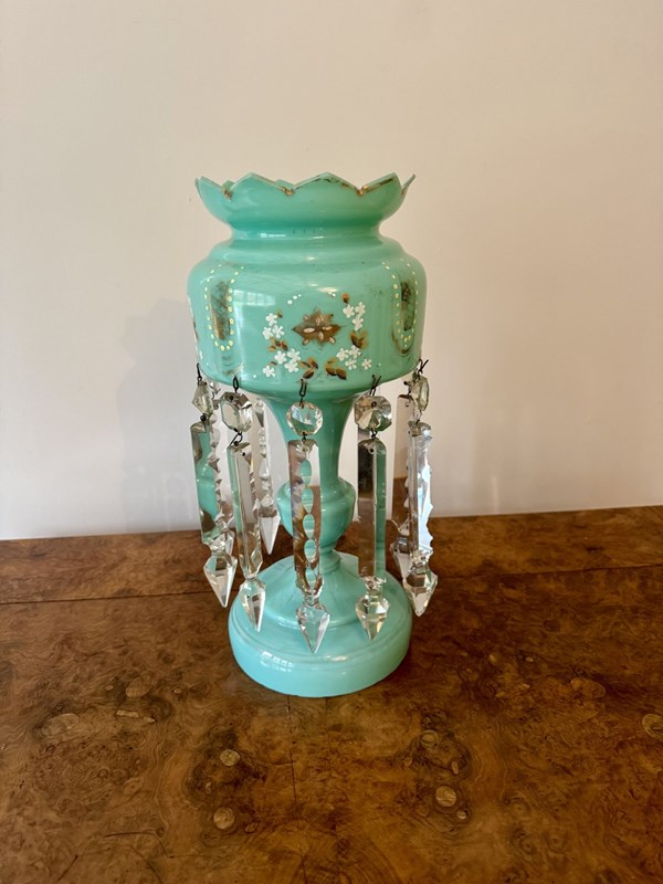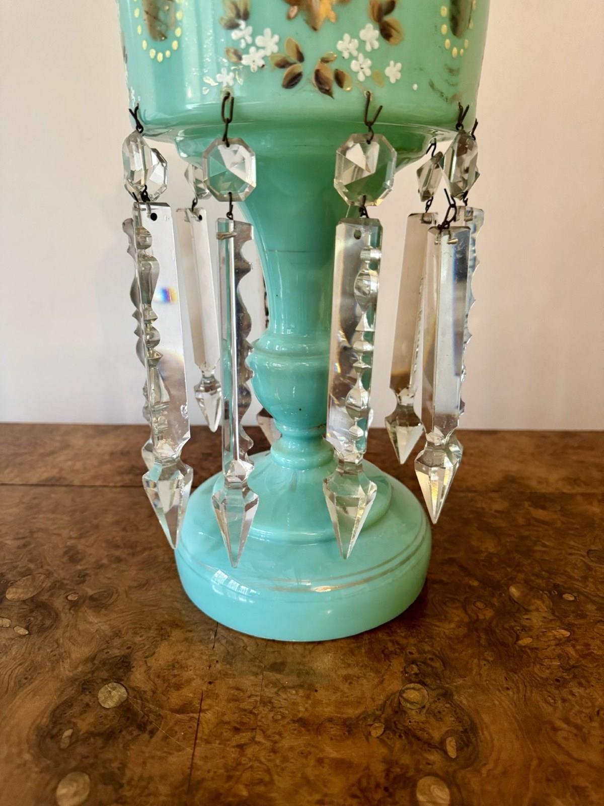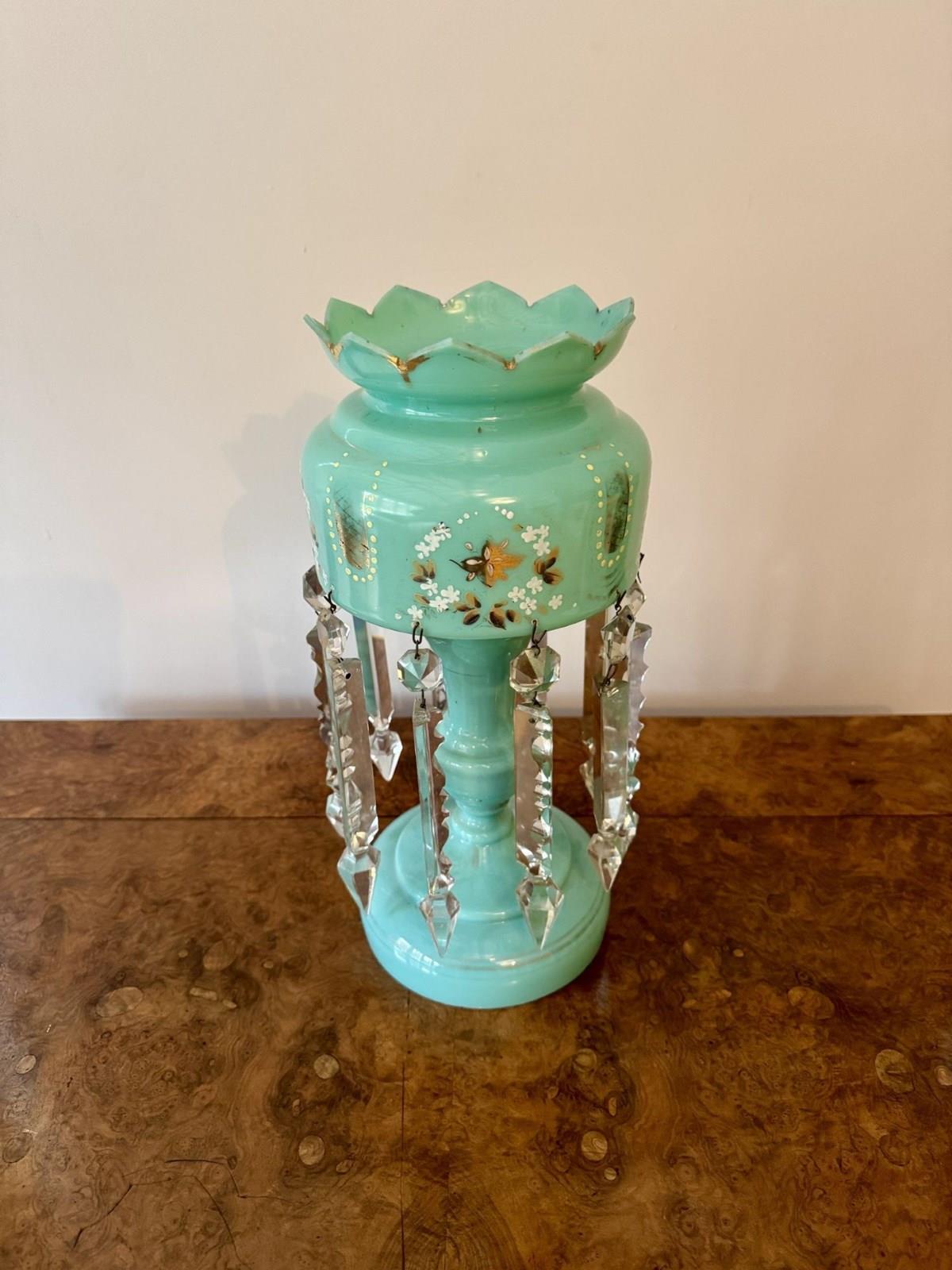 Pretty Quality Large Antique Victorian Turquoise Glass Lustre
