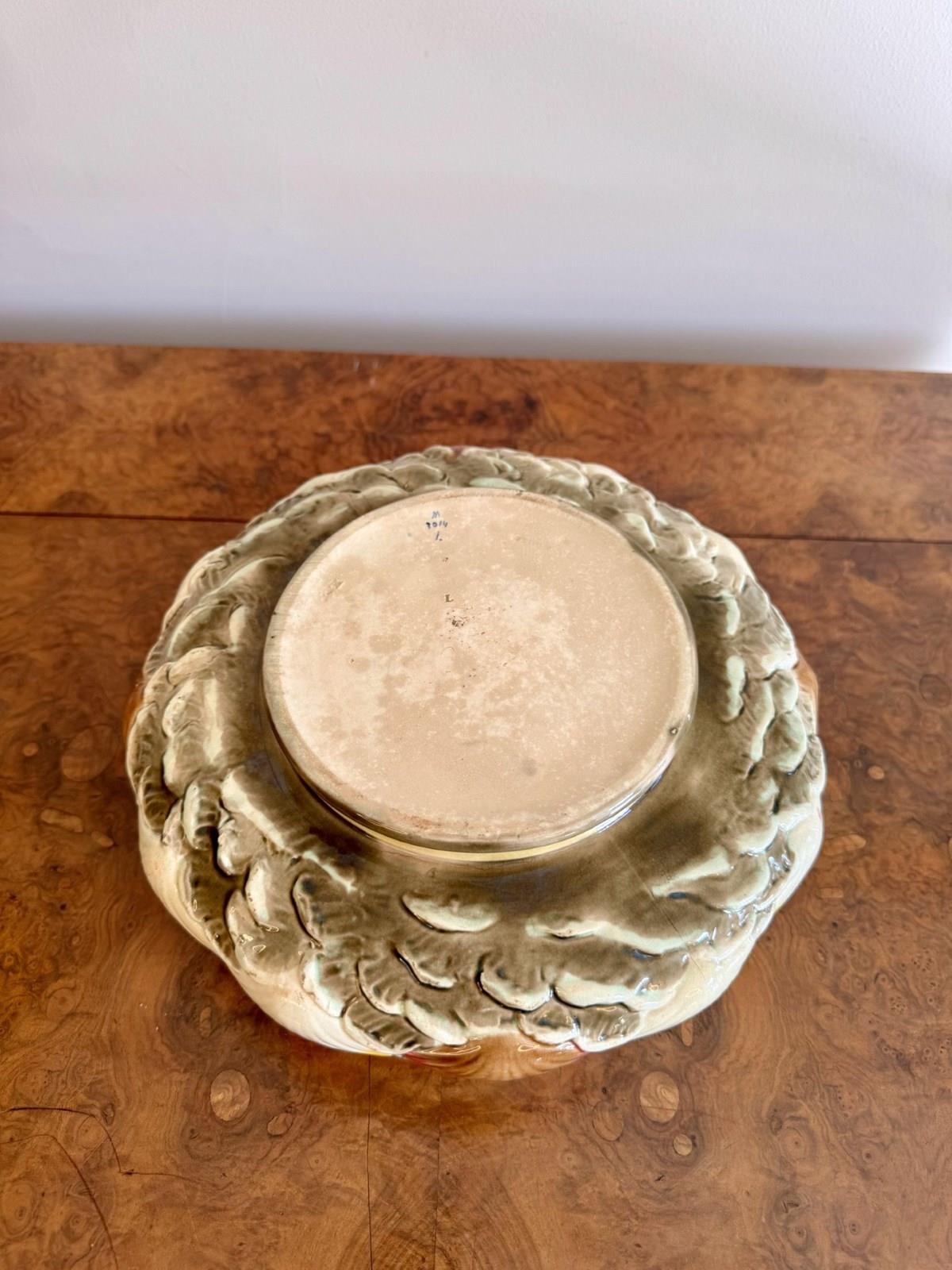 Quality Antique 19Th Century Majolica Salad Bowl And Servers